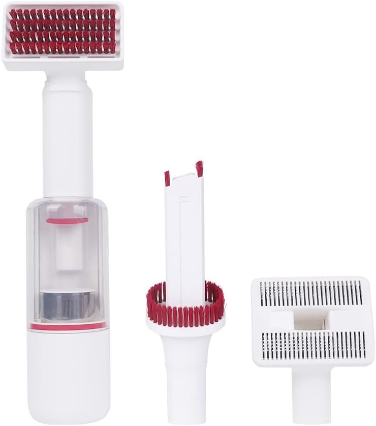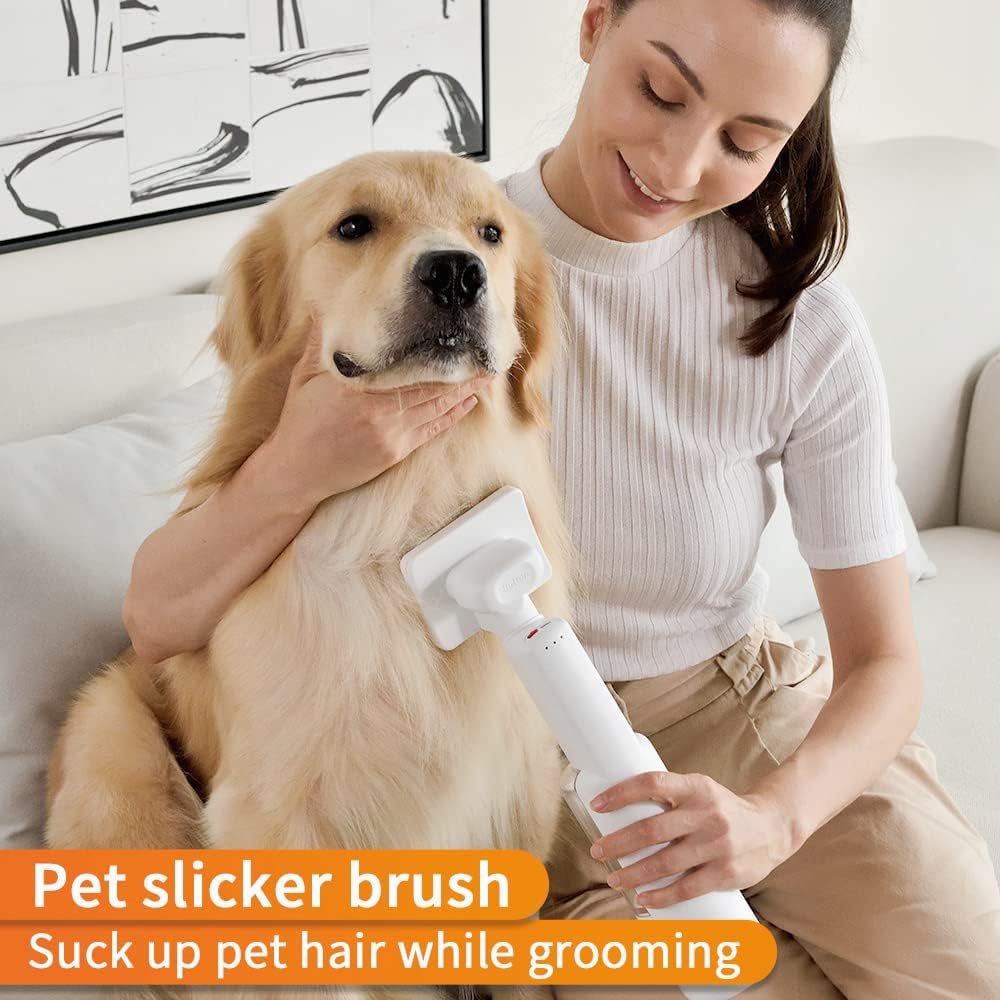 【Multiple accessories】this pet vacuum comes with 3 different brushes: one slicker brush for pet grooming & deshedding, one 2-in-1 crevice nozzle for cleaning narrow gaps, and one upholstery brush.