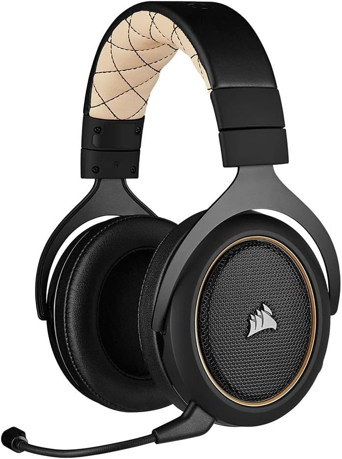 The CORSAIR HS70 PRO WIRELESS Gaming Headset delivers both comfort and quality with memory foam ear pads, custom-tuned 50mm neodymium audio drivers, and low-latency 2.4GHz wireless.