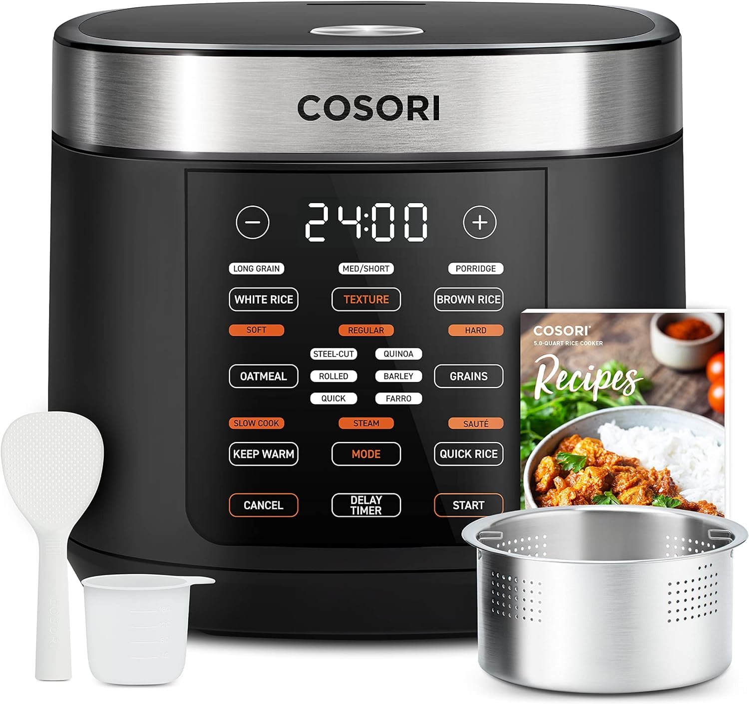 COSORI Rice Cooker Maker 18 Functions Multi Cooker, Stainless Steel Steamer, Warmer, Slow Cooker, Sauté, Timer, Small & Mini Appliance for 2/4/6/8 People, JapaneseStyle, Olla Arrocera, 10 cup Uncooked