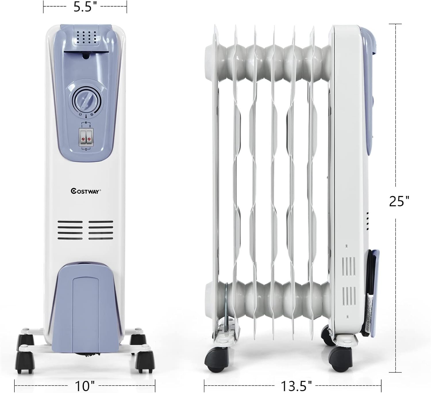 COSTWAY Oil Filled Radiator Heater, 1500W Portable Space Heater with Adjustable Thermostat, 3 Heat Settings, Overheat and Tip-Over Protection, Electric Oil Heater for Living Room Bedroom, Indoor Use