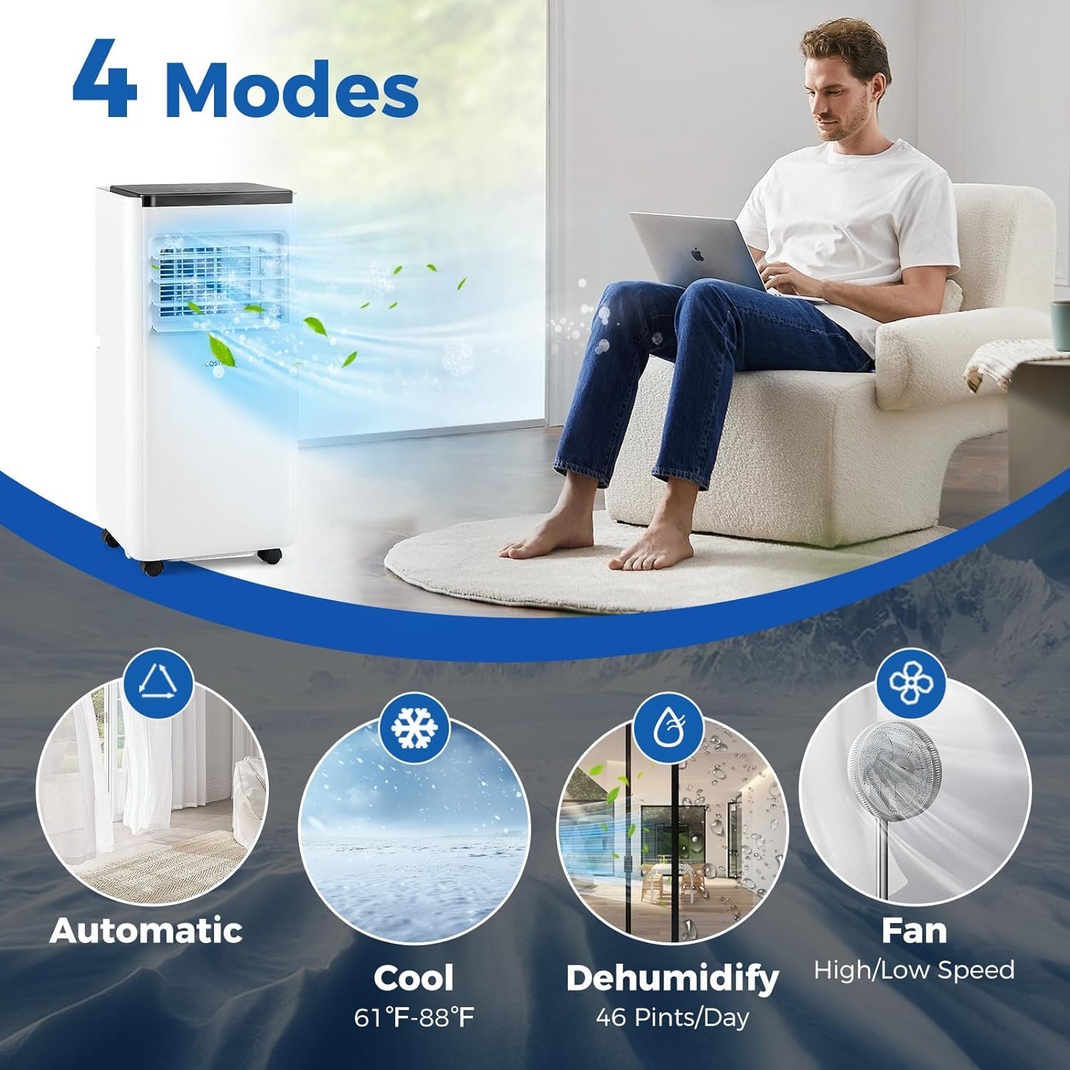【4 Modes for Maximum Comfort:】This multi-functional AC unit boasts 4 modes including automatic, cool, dehumidify and fan to maintain the perfect balance of comfort in your home. The dehumidifier mode tackles humidity, while the fan mode circulates air when less cooling is needed.