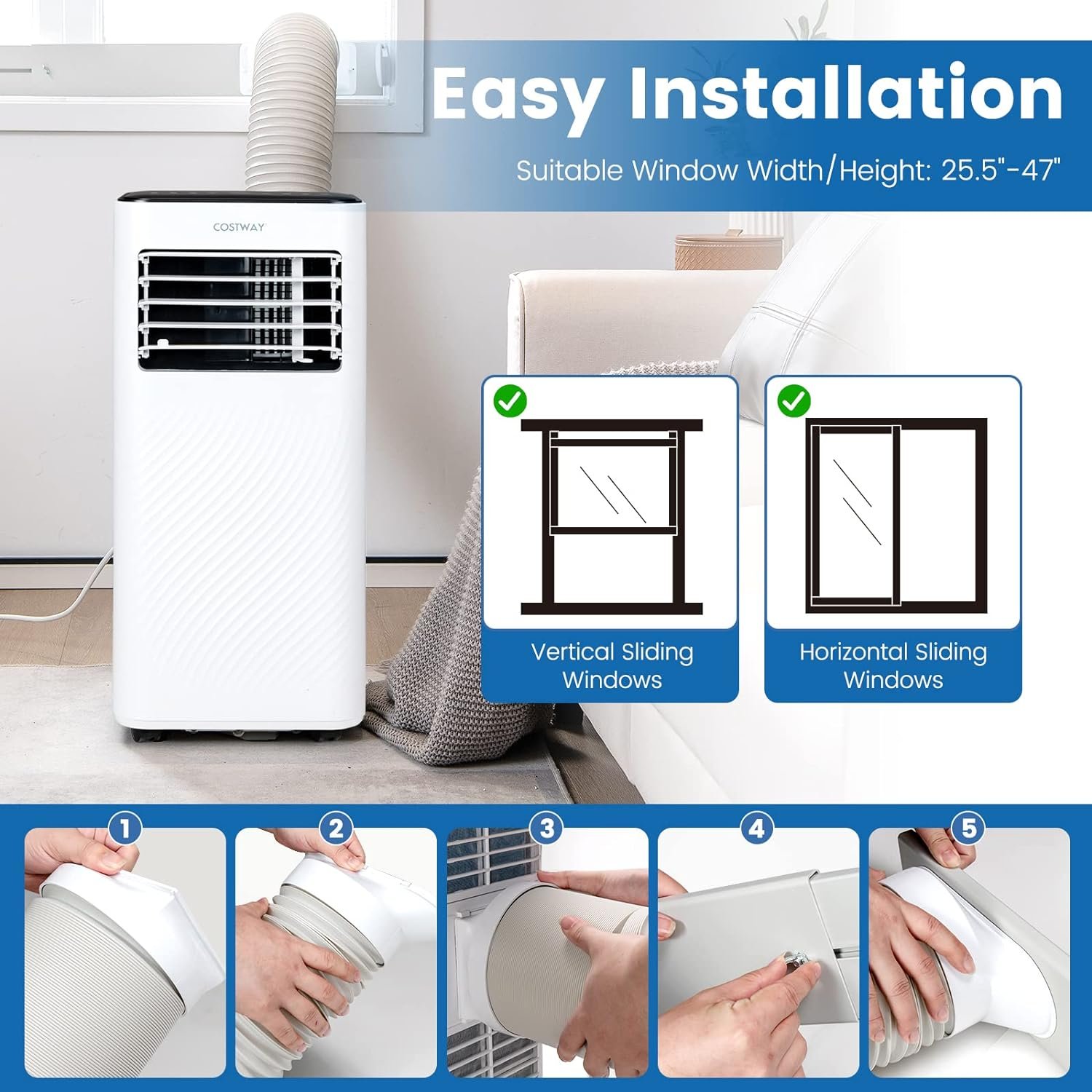 ❄️【Easy Installation and User-Friendly Features】The included window kit makes installation easy for most window sizes, and it’s compatible with windows 25.5″-47″ in width/height. With carry handles and universal wheels, it’s easy to move from room to room. The removable and washable filter makes cleaning simple and hassle-free.