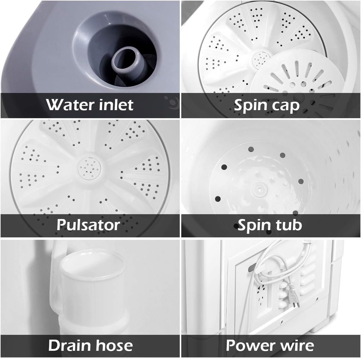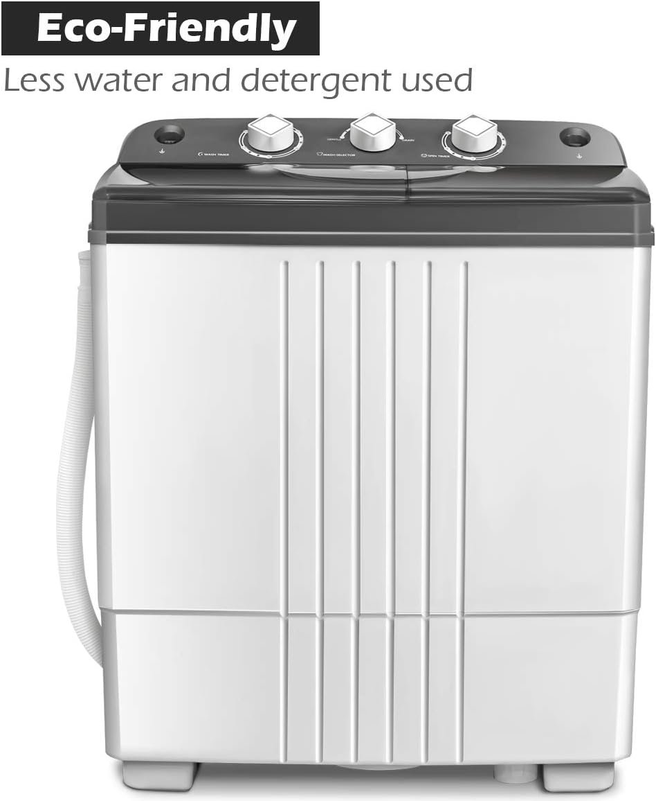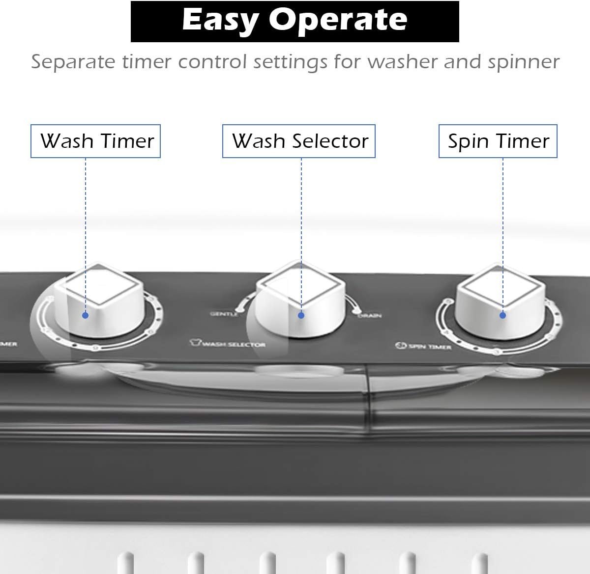 💦【Compact & Portable Washer】This twin tub washing machine is portable and compact. It is perfect for your limited space such as dorms, apartments, condos, motor homes, RV’s, camping and more. And the light weight makes it easy for moving.