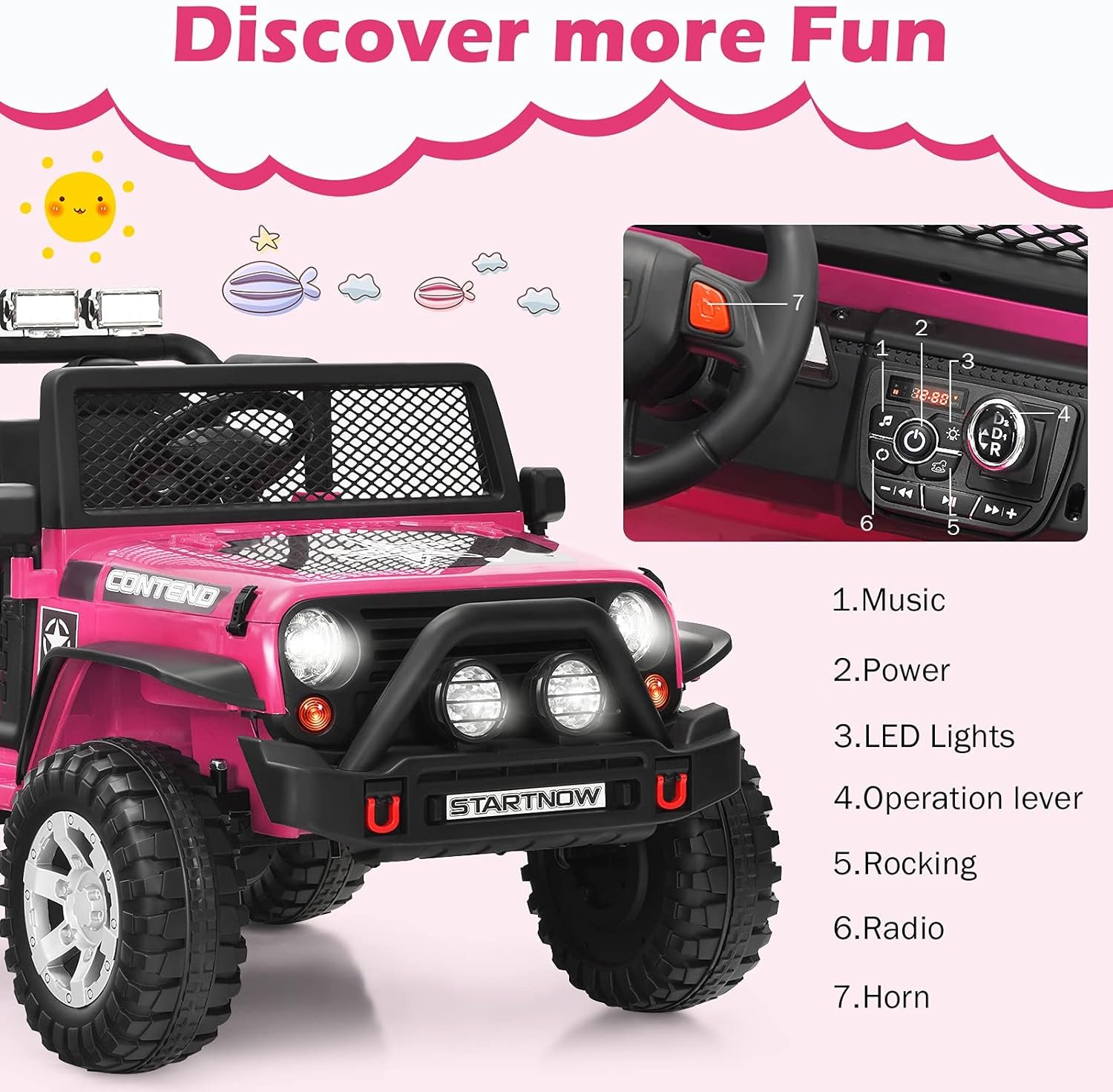 Music & Audio Options: Featuring music, this ride-on car manages to bring more joy to kids. Equipment integrated control system to increase much more pleasure. MP3, USB outlet, functions mean to plug in other music devices or connect phones for more audio options for your kids’ preference.