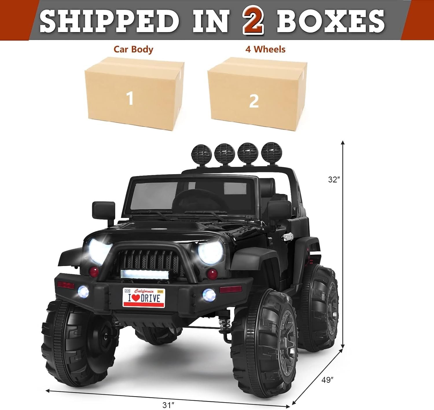 🚙Perfect Gift for Kids: Thanks to 2 powerful drive motor, this jeep speed can reach 3-6 km/h to provide an exciting feeling for kids. With cool and stylish look, this electric car for kids is a perfect gift for child aged 3-7 years old. Your child can drive the car to race with friends, fully releasing their youthful energy.