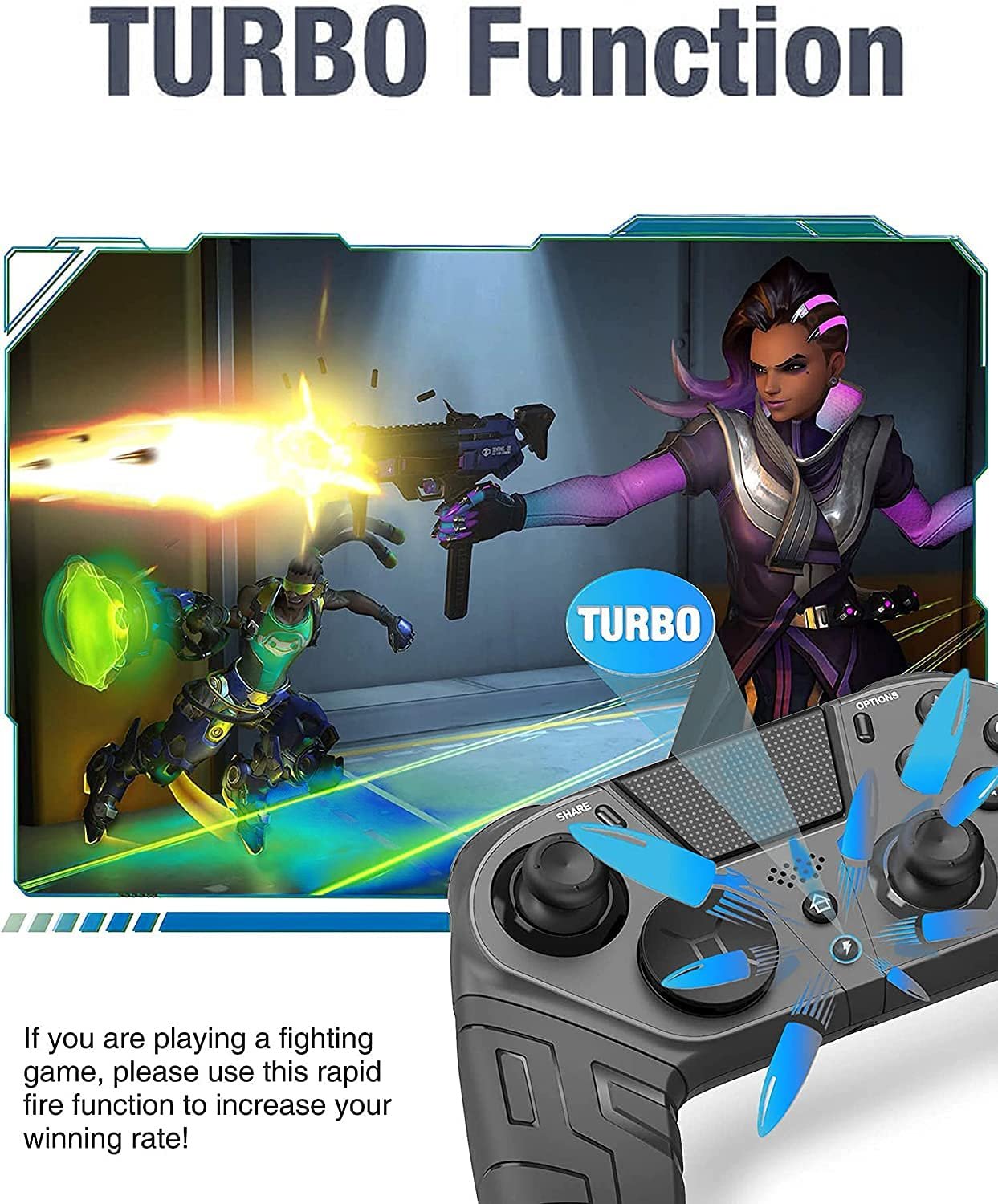 【6-Axis gyroscope, dual vibration and Turbo functions】: The highly sensitive 6-Axis gyroscope supports direction control, shooting aim and character input. Dual vibration gives you the authentic attack and shooting experiences. Skin-friendly touch- the 2 different replaceable crip covers are the best for long time hand grip. If you play fighting games, try the rapid fire function to increase your winning rate!