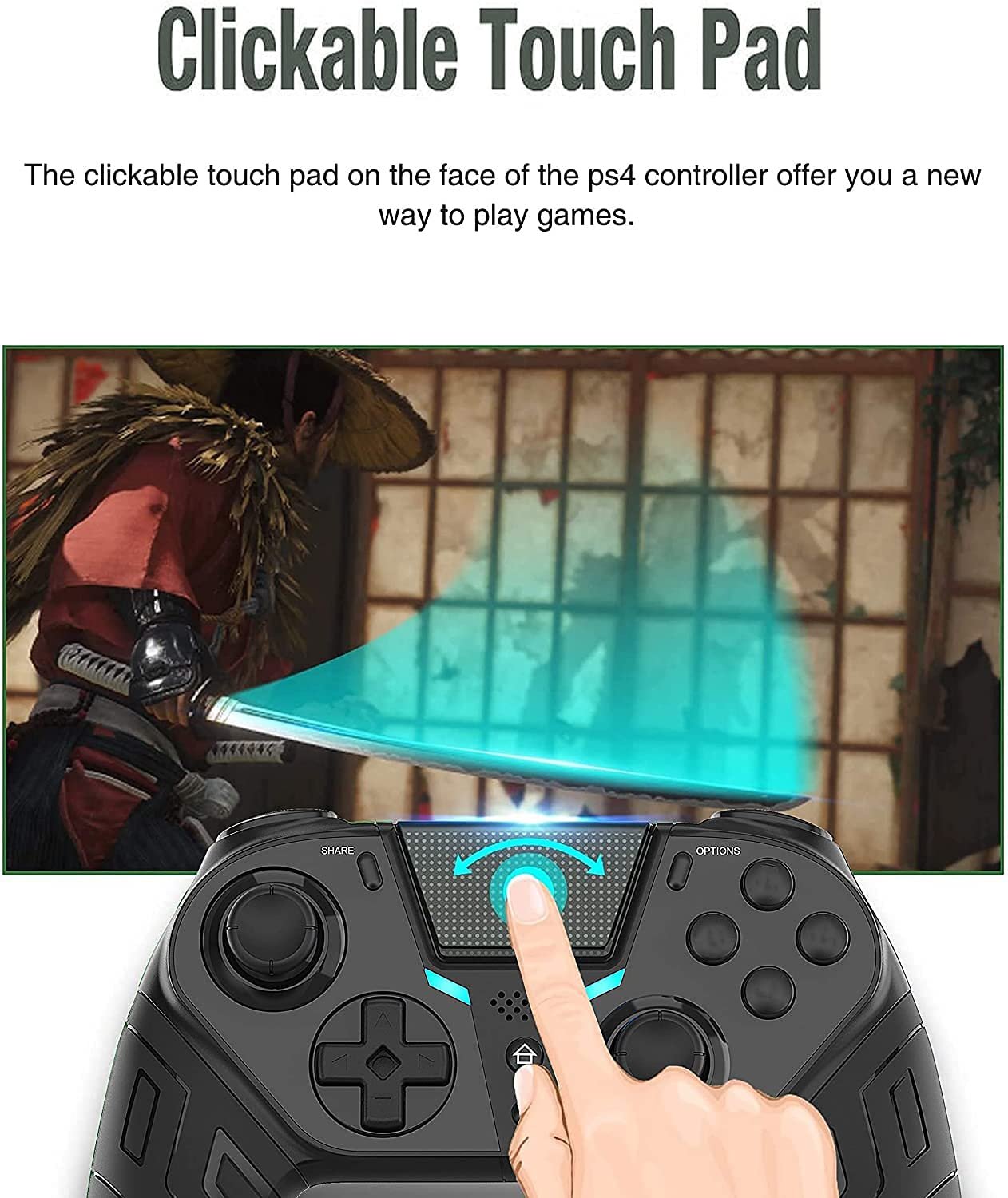 【Clickable Touch Pad of PS4 Controller】: The clickable touch pad on the face of the Wireless Controller for PS4 offer you a new way to play games. This controller supports click and touch functions to meet your needs.