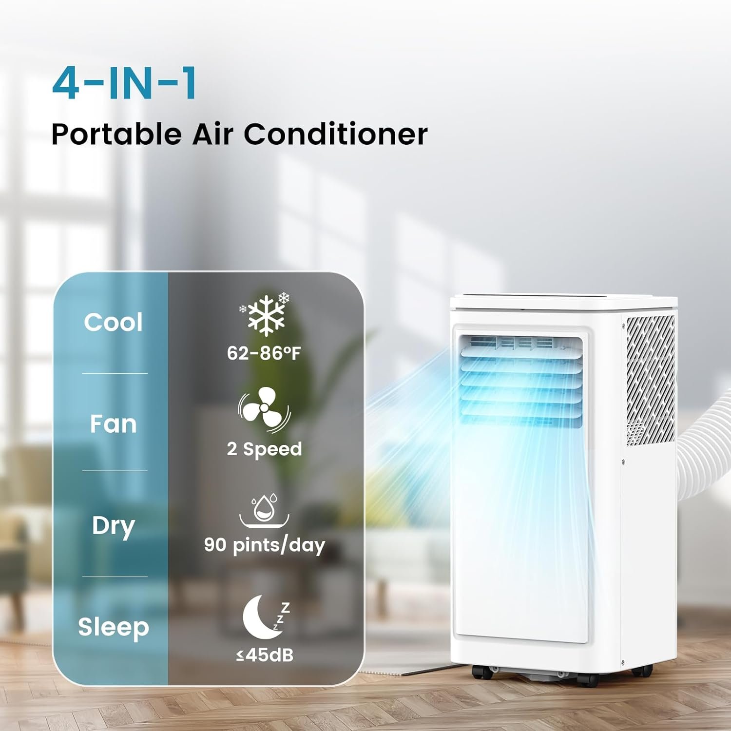COWSAR 8000 BTU Portable Air Conditioners, Portable AC Cool up to 350 Sq.Ft, 4 Modes Room Air Conditioner with Remote/LED Display/24Hrs Timer/360° Wheels/Installation Kits, Ideal for Home/Office/Dorms