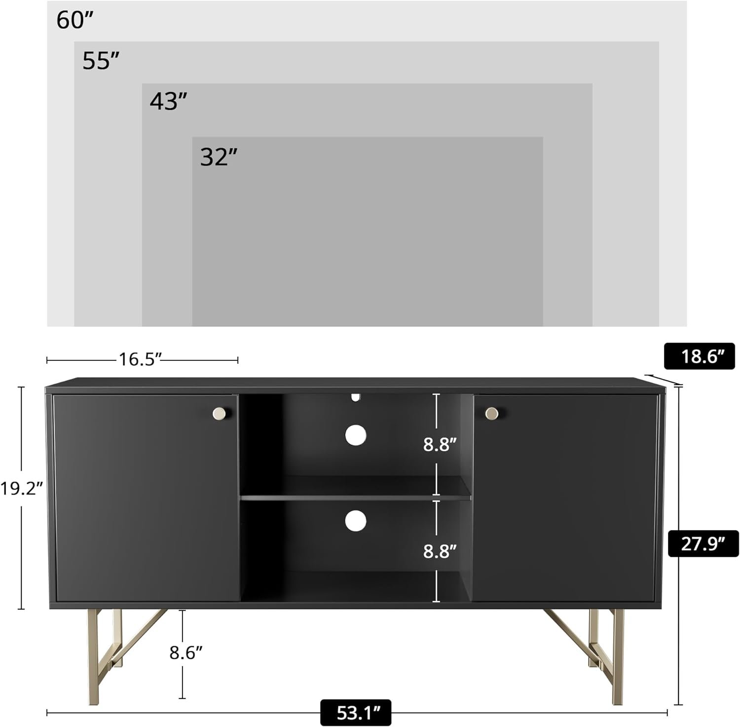 【Modern TV Stand for TVs up to 60″】This Mid-Century TV Stand with storage can accommodate most flat screen/curved TVs and hold up to 150 lbs. The assembled dimension of 53.1’’L*18.6’’W *27.9’’H, it’s recommended for TVs up to 60’’.
