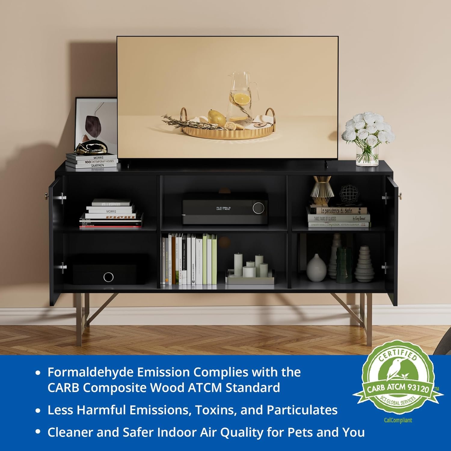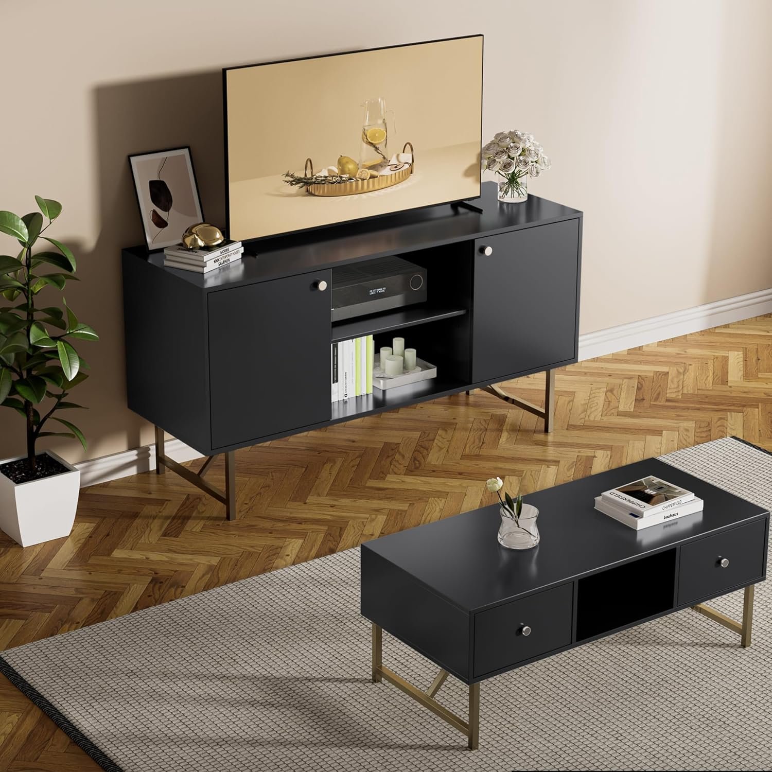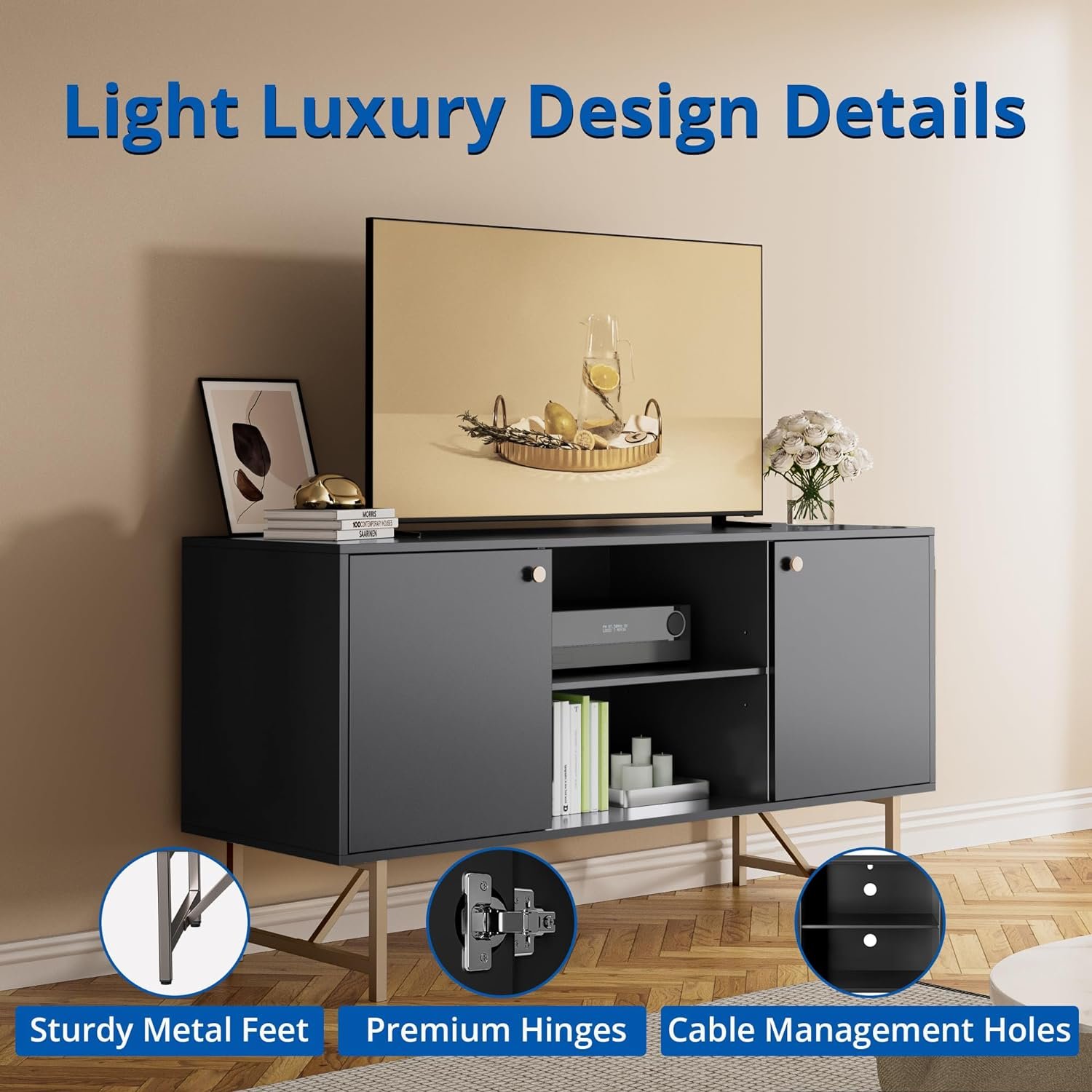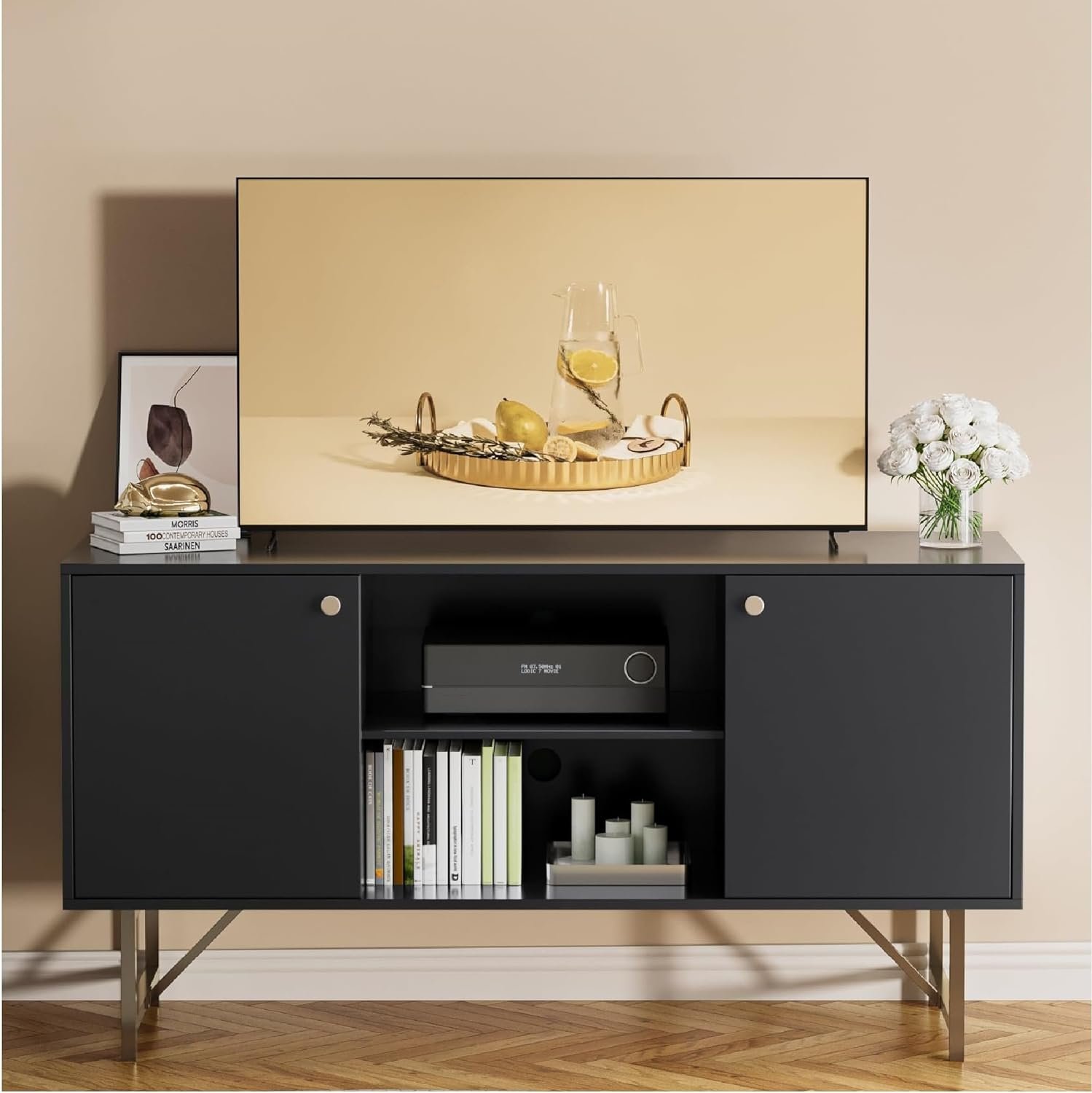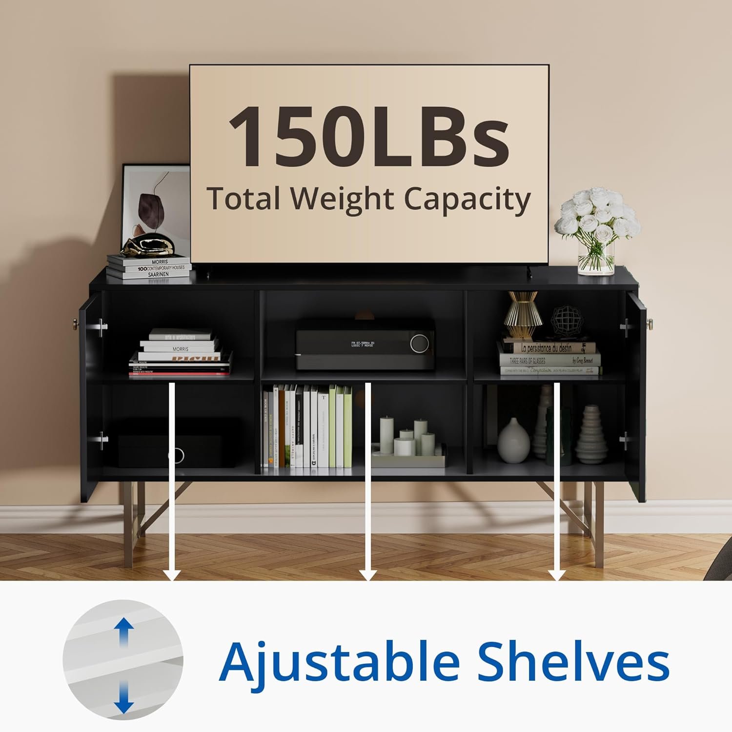 【Ample Storage & Adjustable Shelves】This TV console comes with 2 storage compartments with doors and 2 open space shelves, the middle shelf is adjustable with 3 different options, providing large and flexible storage capacity space.
