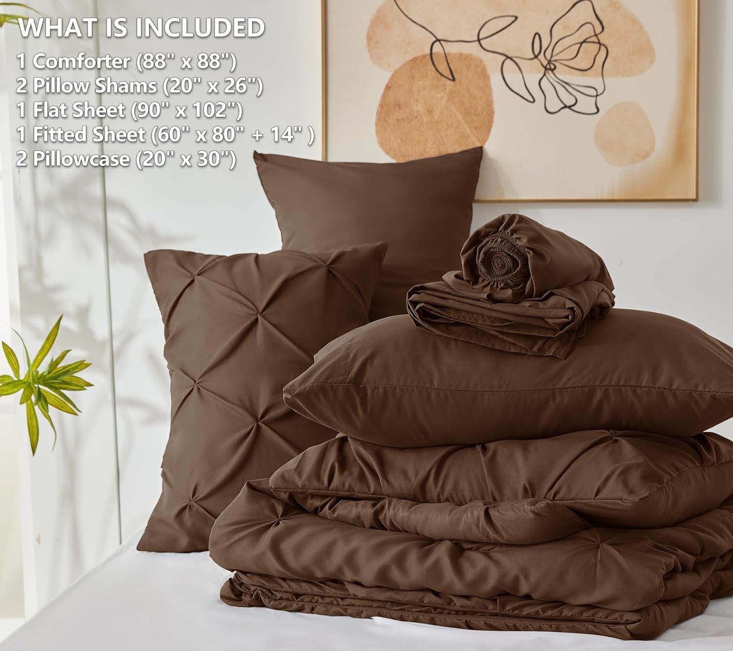 What You Can Get: Queen Size bed in a bag includes 1 Comforter 88″x88″, 2 Pillow Shams 20″x26″, 1 Flat Sheet 90″x102″ , 1 Fitted Sheet 60″x80″+14″ and 2 Pillowcase 20″x30″. Our bed in a bag is packaged in a vacuum bag, so you can dry it in low heat or tap the comforter gently while baking it in the sun to fluffy again