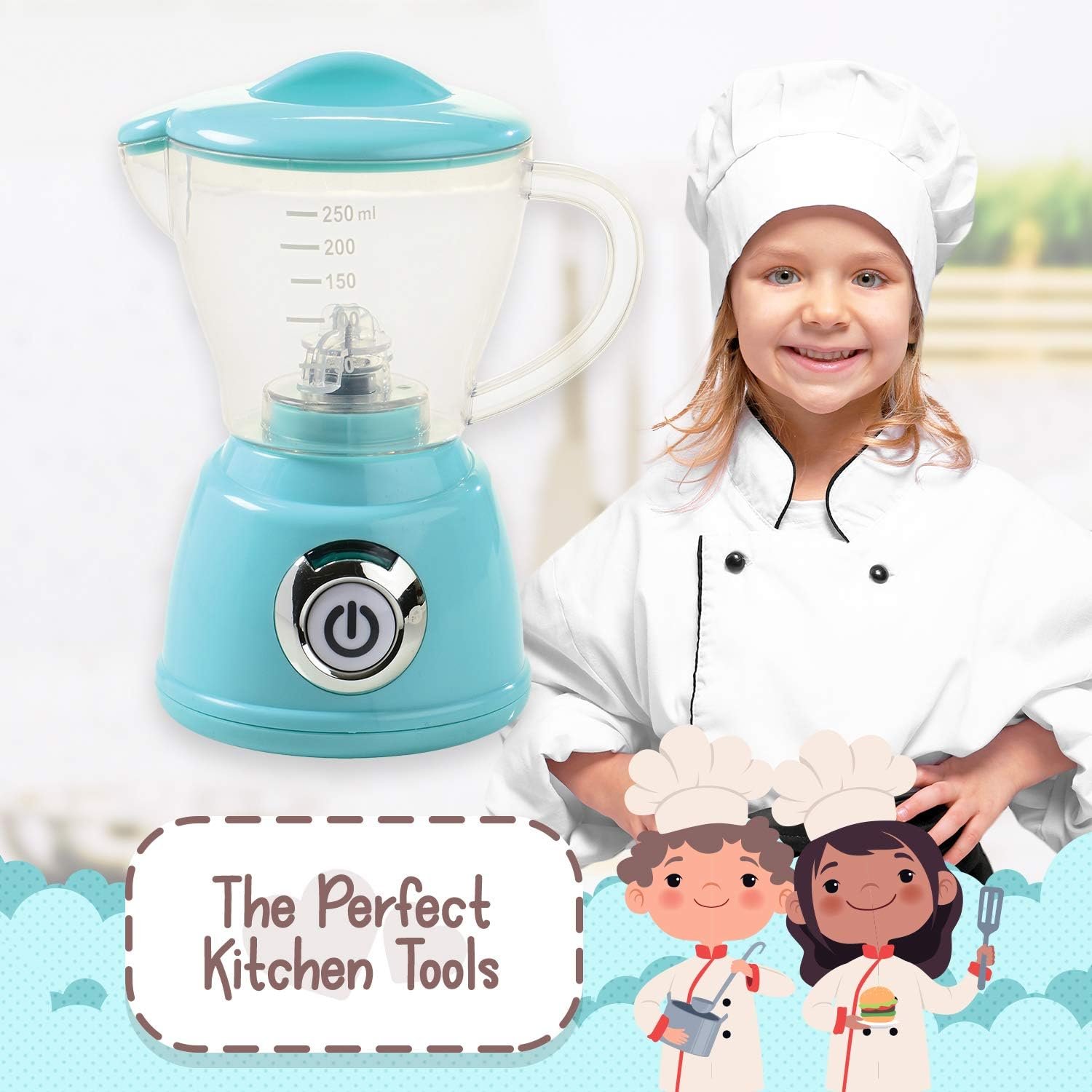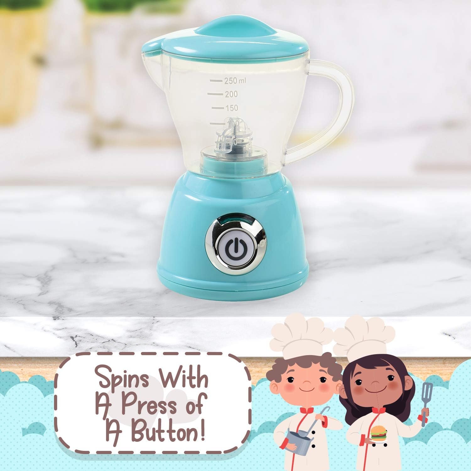 STYLISH DESIGN – Blue modern blender toy for kids to play kitchen and cooking games.