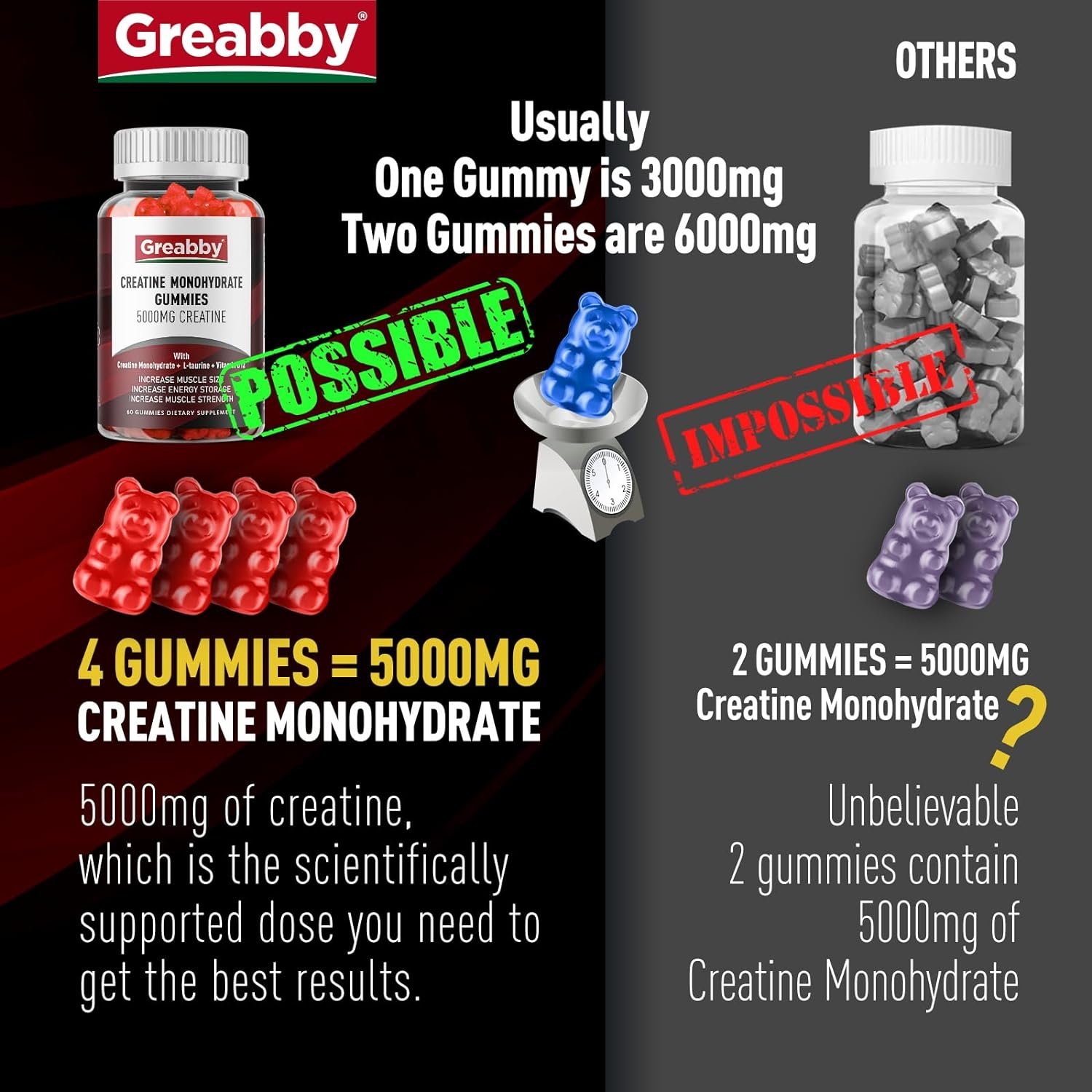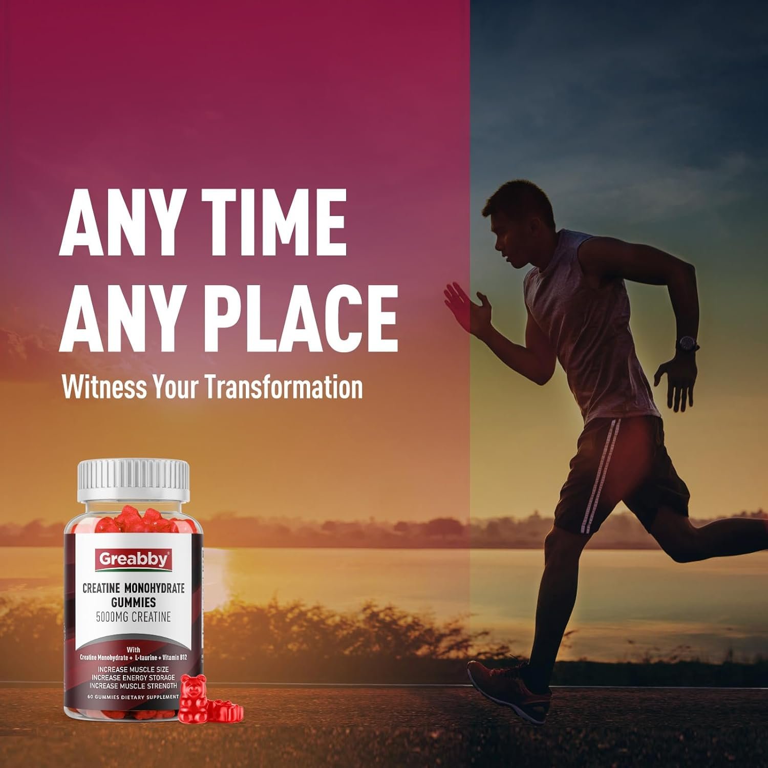 💯𝗔𝗕𝗢𝗨𝗧 𝗧𝗛𝗘 𝗤𝗨𝗔𝗟𝗜𝗧𝗬 𝗔𝗡𝗗 𝗙𝗢𝗥𝗠𝗨𝗟𝗔𝗧𝗜𝗢𝗡: Creatine Monohydrate with Vitamin B12, and Taurine are exactly what you need during your workout. They help the body create energy more efficiently, which helps to increase the potential to stimulate the body. Four creatine monohydrate chewable gummies provide 5000 mg (5 g) of your daily requirement.