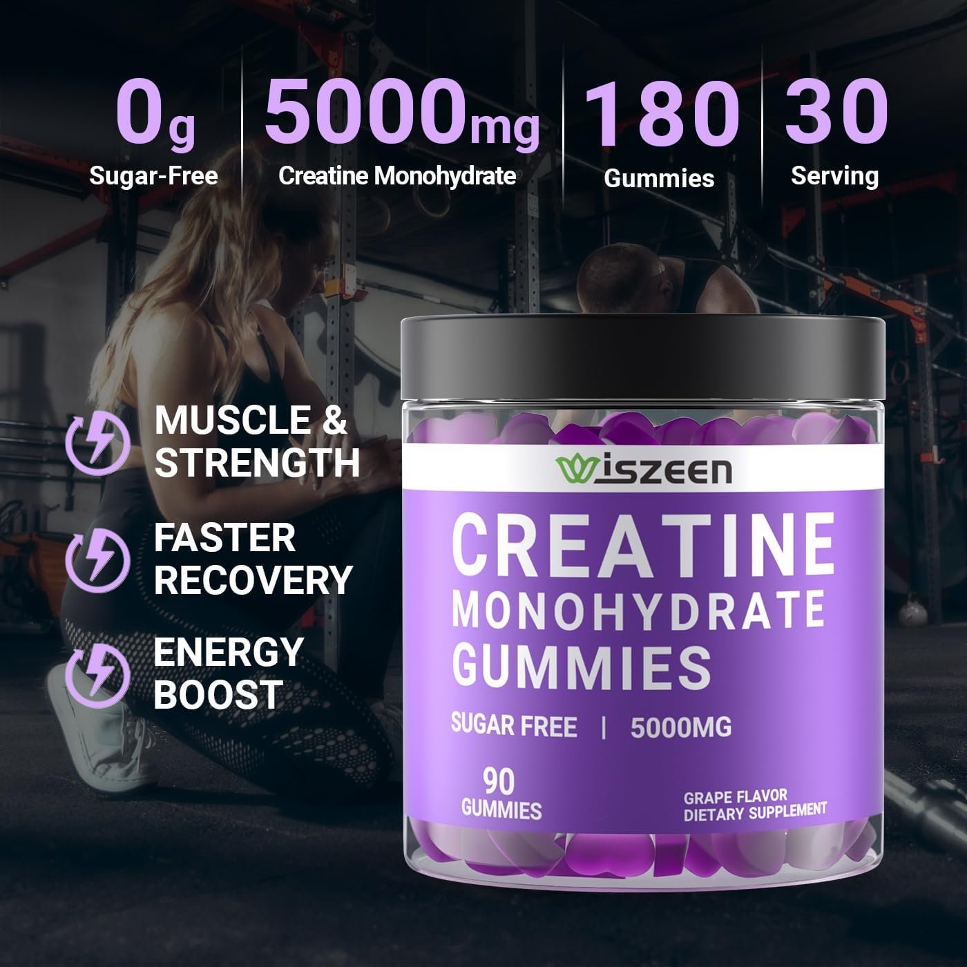 180 GUMMIES | 5000MG PER SERVING – Each serving is packed with 5g of Creatine Monohydrate, Take creatine infused gummies per day before or after exercise. It allows you to exercise longer, provides you extra energy.