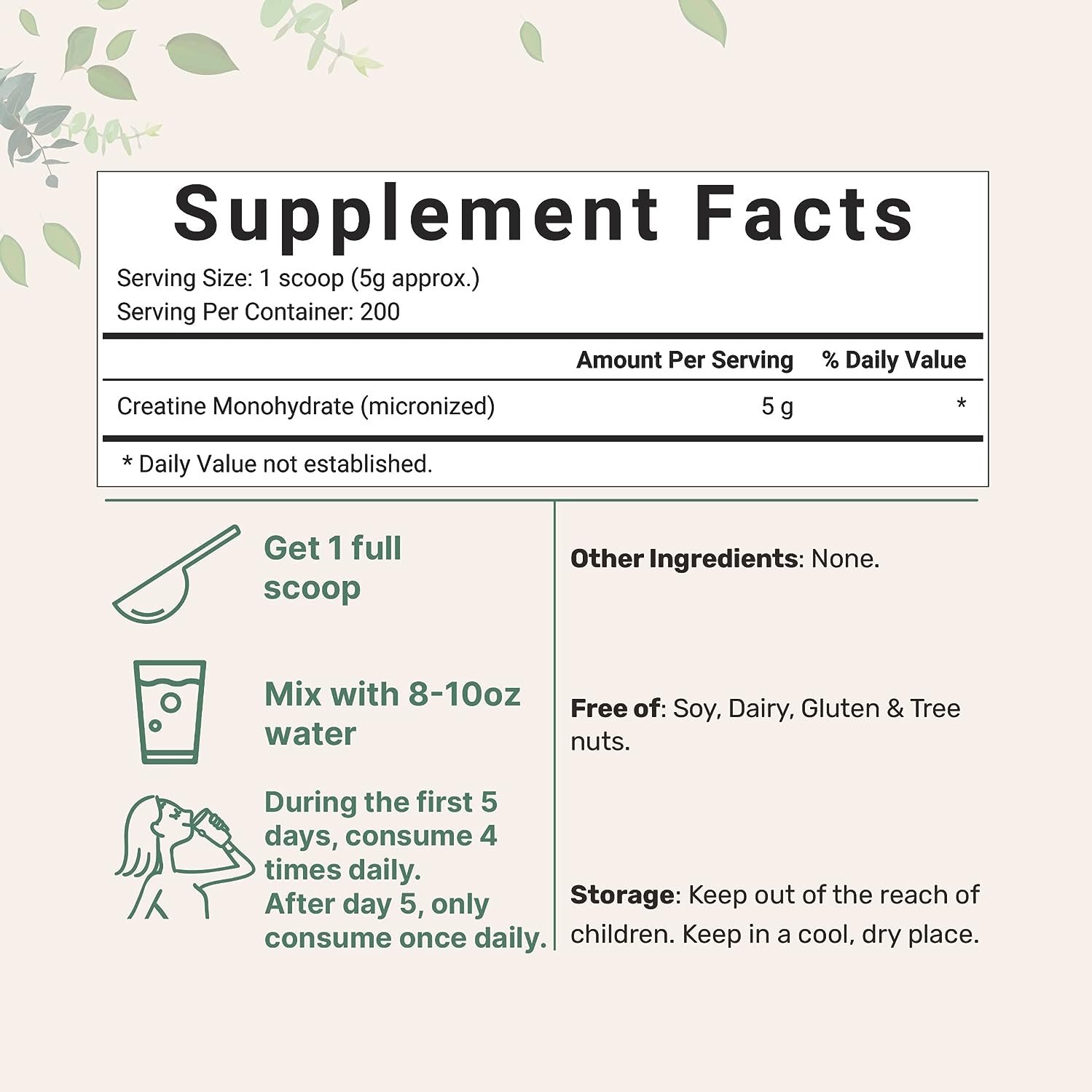Premium creatine powder made without soy, dairy, gluten, and tree nuts.