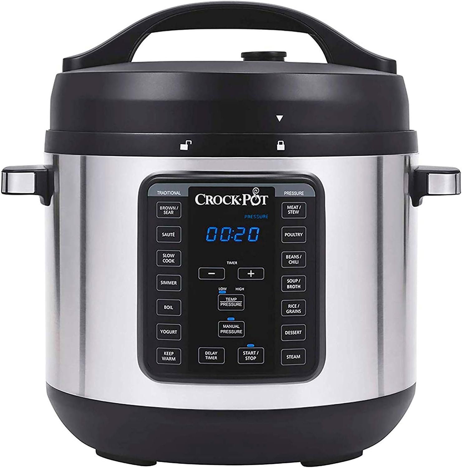 The Crock-Pot 8-Quart Express Crock XL Multi-Cooker can cook meals up to 70% faster than traditional cooking and has enough capacity to serve nutritious, home-cooked meals for large families or parties of ten people or more. Thanks to convenient one-touch settings for various pressure-cooked meals, you can choose to eat sooner, or you can use the slow cook setting to come back later to a delicious, hot meal. You can also steam, brown, sauté, simmer, boil, or use the Manual Pressure setting, making one-pot meals easier than ever. Additional sealing gasket included.