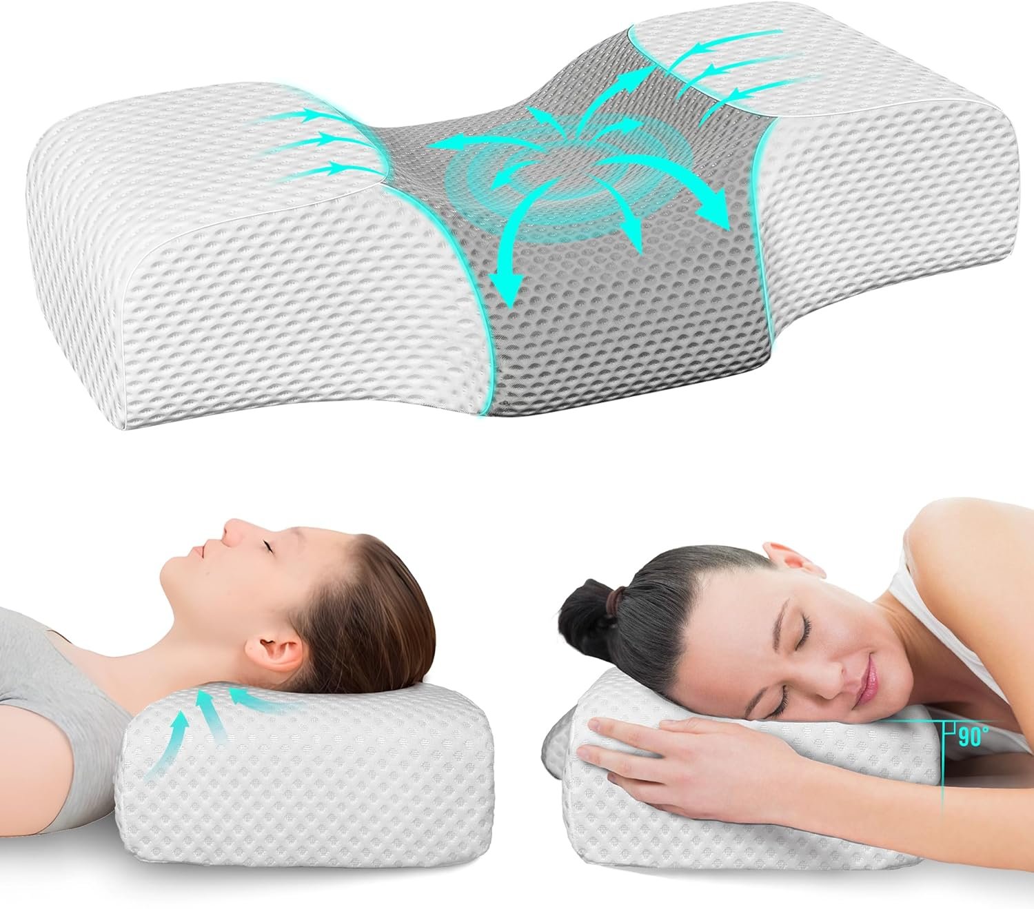 ✅【Upgraded Cube Memory Foam Pillow】The cube pillows is specific for side sleepers, while we heard from some of them also sleep on their back. So we designed a back sleeping area in the middle of cube shape pillow, this neck and head support pillow is perfect for both side and back sleepers.