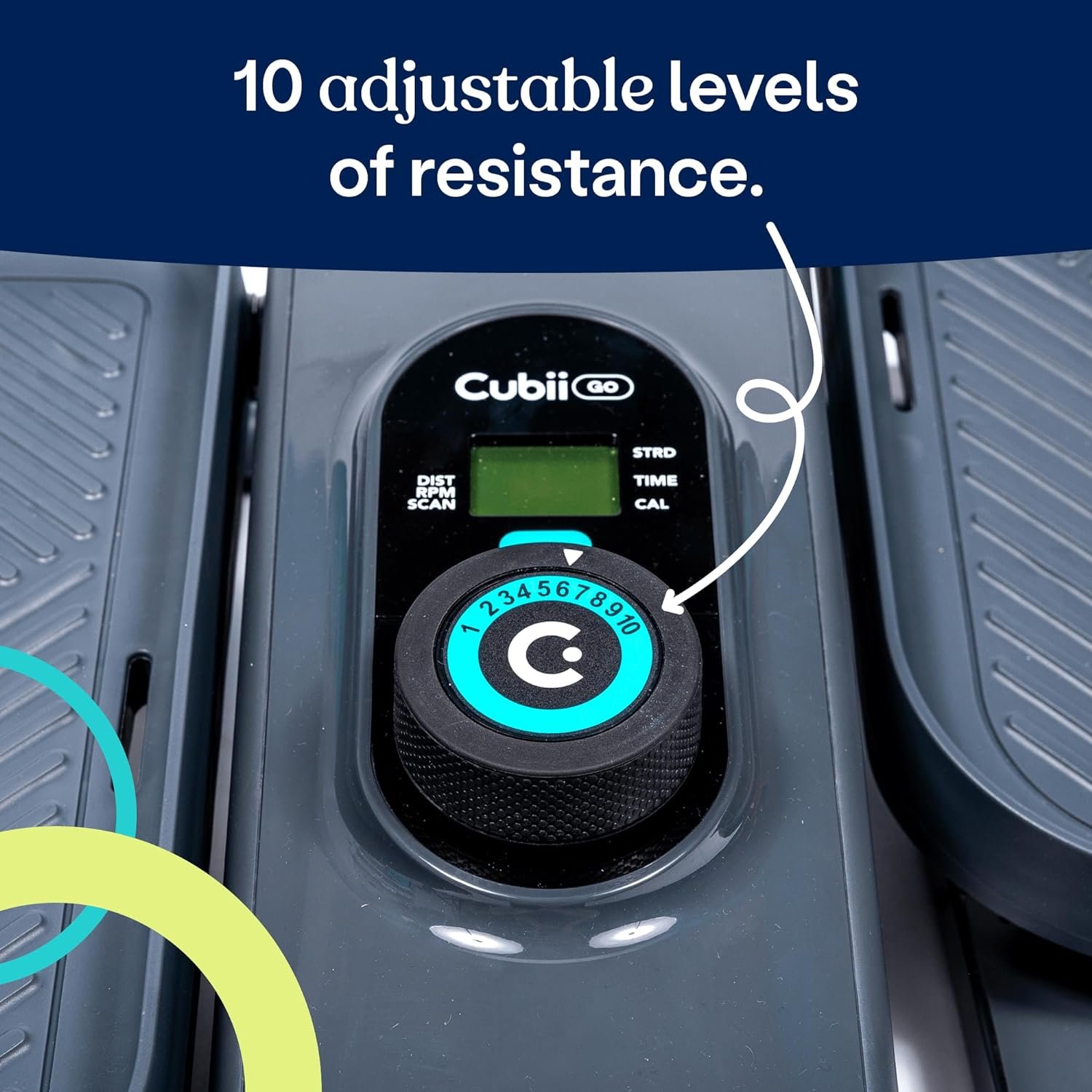 Cubii GO – Under Desk Elliptical Bike Pedal Exerciser, with LCD Fitness Tracker Screen, Adjustable Resistance, Work from Home Fitness, Built-in Wheels and Portable Expanding Handle