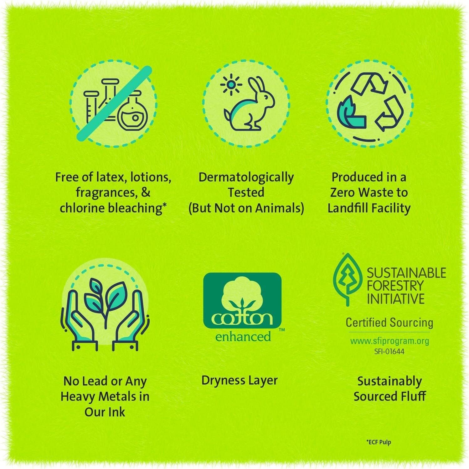 SOFT and HYPOALLERGENIC: Made from cottony soft materials free of latex, fragrance, dyes and chlorine, these diapers feature a hypoallergenic inner liner enriched with aloe, natural botanicals and vitamin E