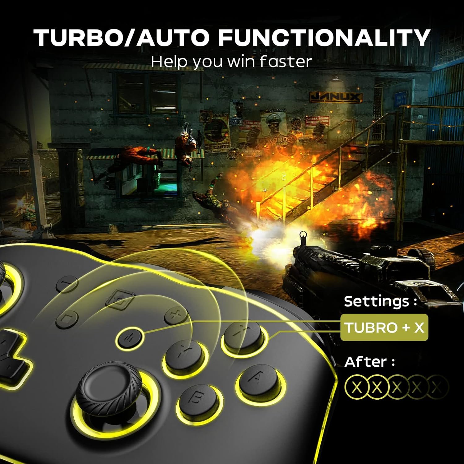 ✨[ TURBO & WAKE-UP FUNCTION ] — From this wireless switch controller, TURBO function allows you to quickly and effortlessly execute complex moves and combos with ease. Wake-up Function lets you turn on your Switch console with a single press of the HOME button.