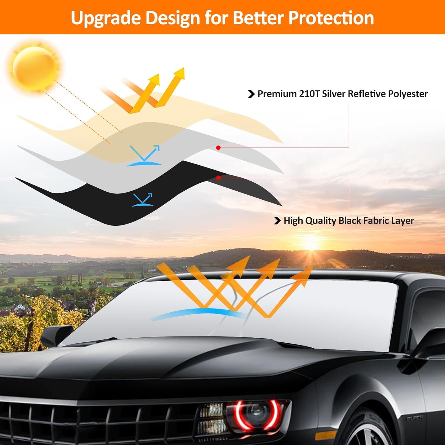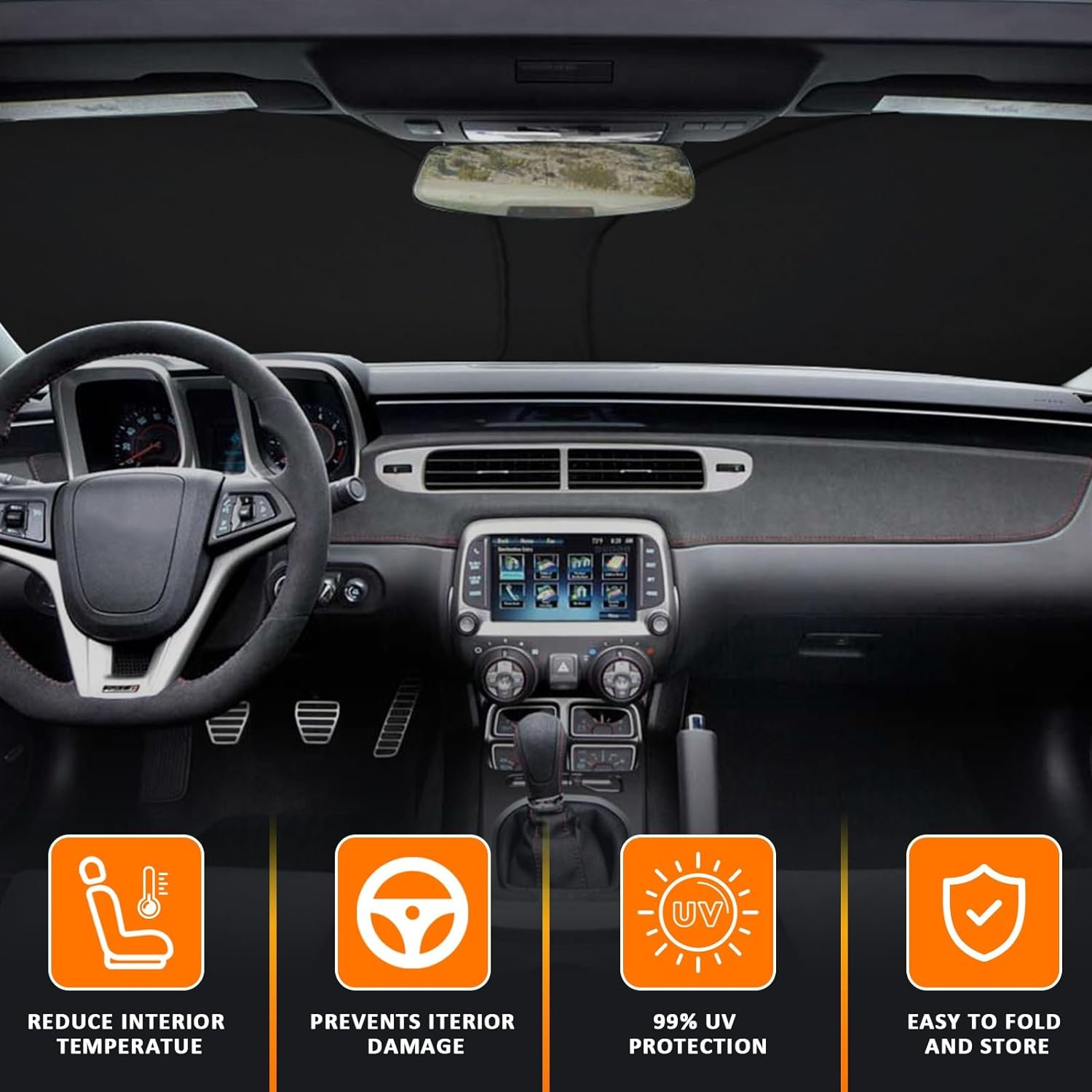 Fitment Lists: D-Lumina Windshield Shade Cover for 2010-2015 Chevy Camaro. Fully covered your windshield. Perfectly fit for your Camaro without gap. Don’t let the the harsh sun bake your Camaro interior.