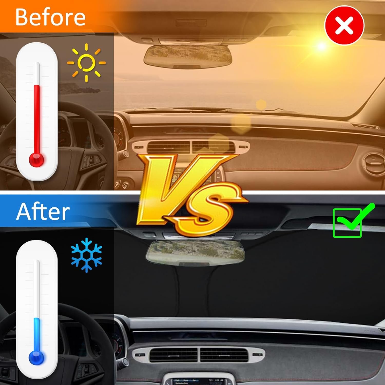 Energy-Saved & Enviromental Friendly: Using less energy and gas which is enviromental when you install this sun shade. You don’t have to wait 15 minutes until your AC to cool off the vehicle. Saves your money while making your drive much more comfortable and enjoyable.