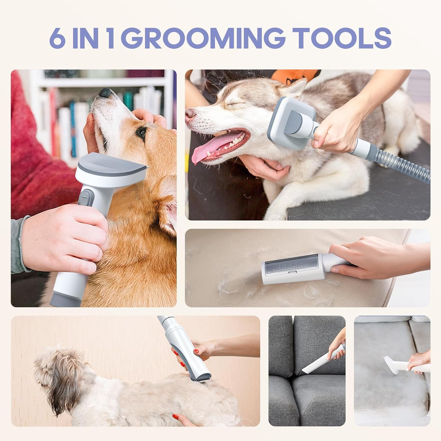 pet vacuum groomer dog groomer vacuum pet hair remover dog groomer vacuum pet hair remover 1 6 IN 1 GROOMING TOOLS 2 4 GUIDE COMBS 3 HAIR-FREE