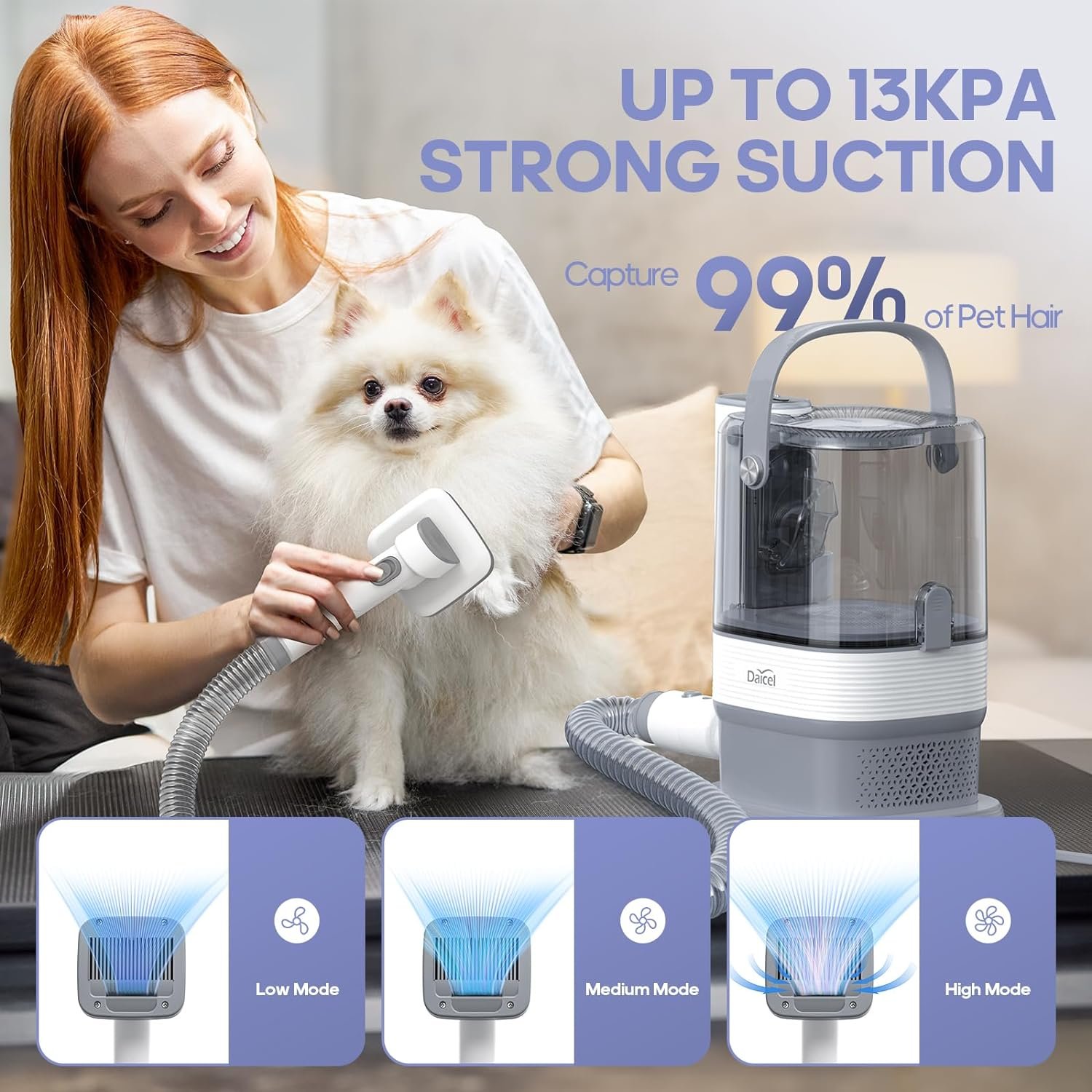 DAICEL Dog Grooming Vacuum, 3.3L Dust Cup Dog Hair Vacuum, Dog Vacuum for Shedding Grooming with Low Noise