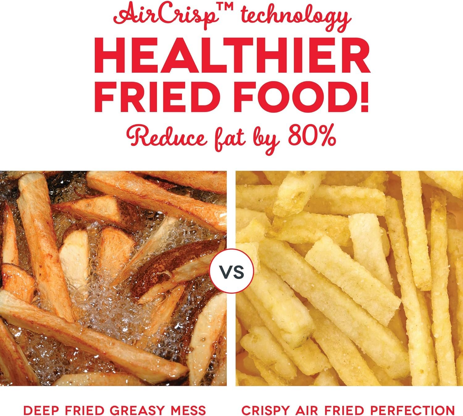 Product 1: HEALTHIER FRIED FOOD: Dash Compact Air Fryer uses AirCrisp technology (instead of oil) to help reduce added fat by 70-80%, without sacrificing the flavor of your fried food (No more residual smell hours after you’ve eaten)