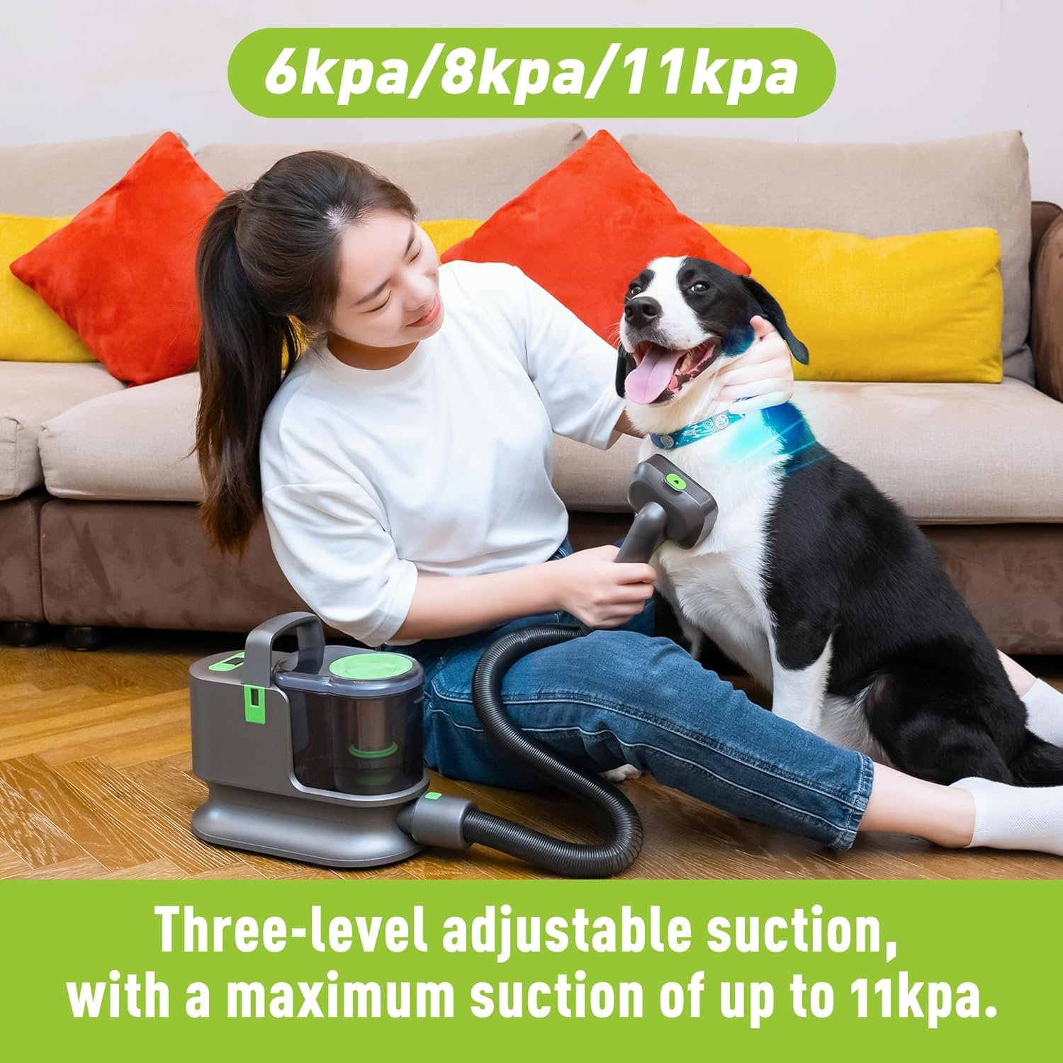 【4 in 1 pet grooming kit】 We provide 4 tools to help you better use your pet vacuum cleaner. Dog grooming brush and de-shedding brush are used to remove loose pet hair; crevice tool and cleaning brush can help you clean the hard-to-reach areas, corners, and your clothes; Our dog pet vacuum is designed to easily clean your home, making your home much cleaner.