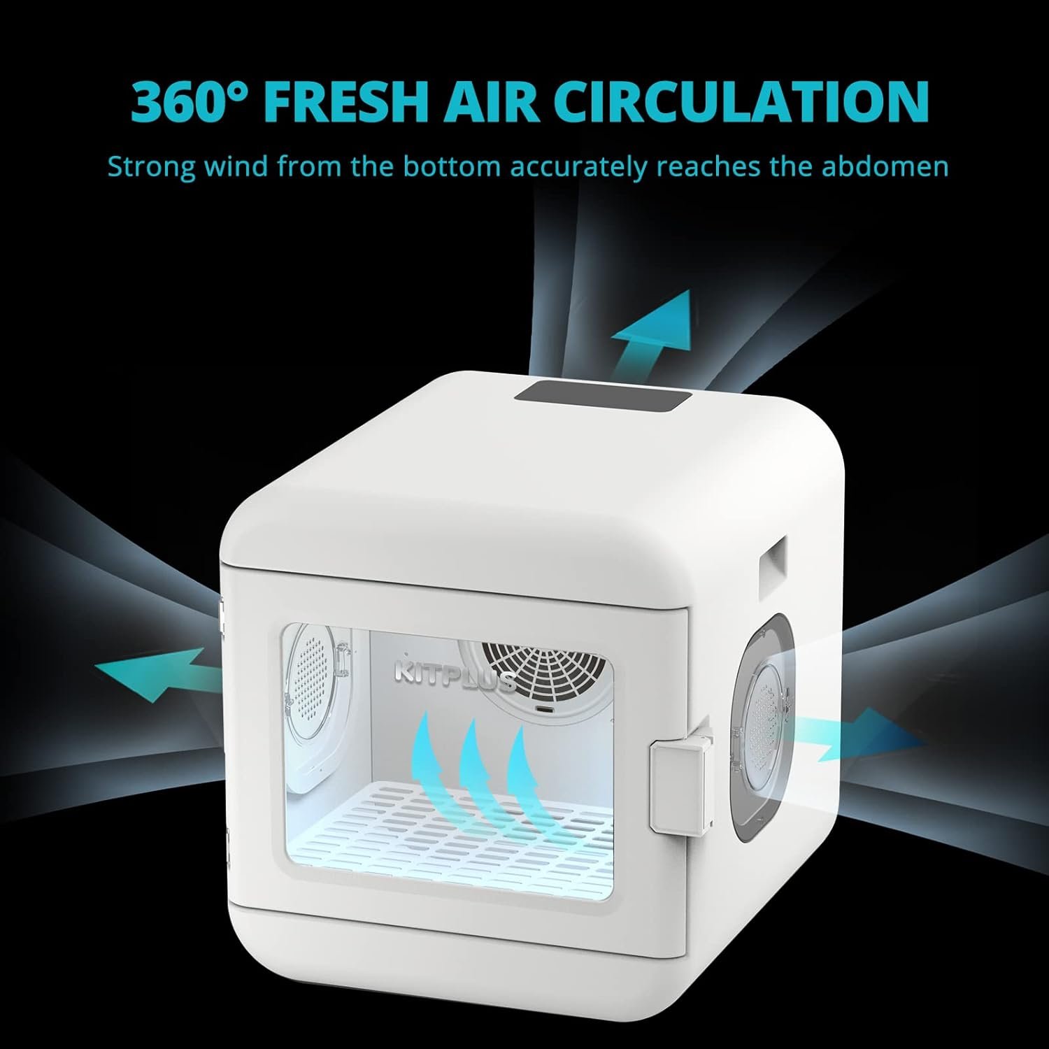 😸360° Infinitely Fresh Air: A powerful wind blows from the bottom to promptly dry the pet’s abdominal area. Circulating air system simulates natural wind, allowing 20% of the air to circulate inside and the remaining 80% to blow outside, increasing the oxygen concentration of the cabin and keeping pets to dry comfortably.