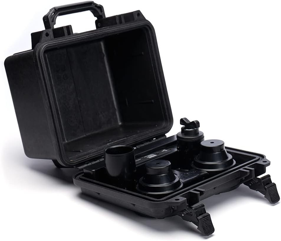 Size: 10.62” x 9.68” x 6.87” (27 x 25 x 18 cm) | Weight: 5.44 lbs (3.37 kg)Case: USA made military spec Pelican 1300 caseAll metal fastening hardware – 316 stainless steel.Grills, port cap, and inner plate – USA molded ABS.