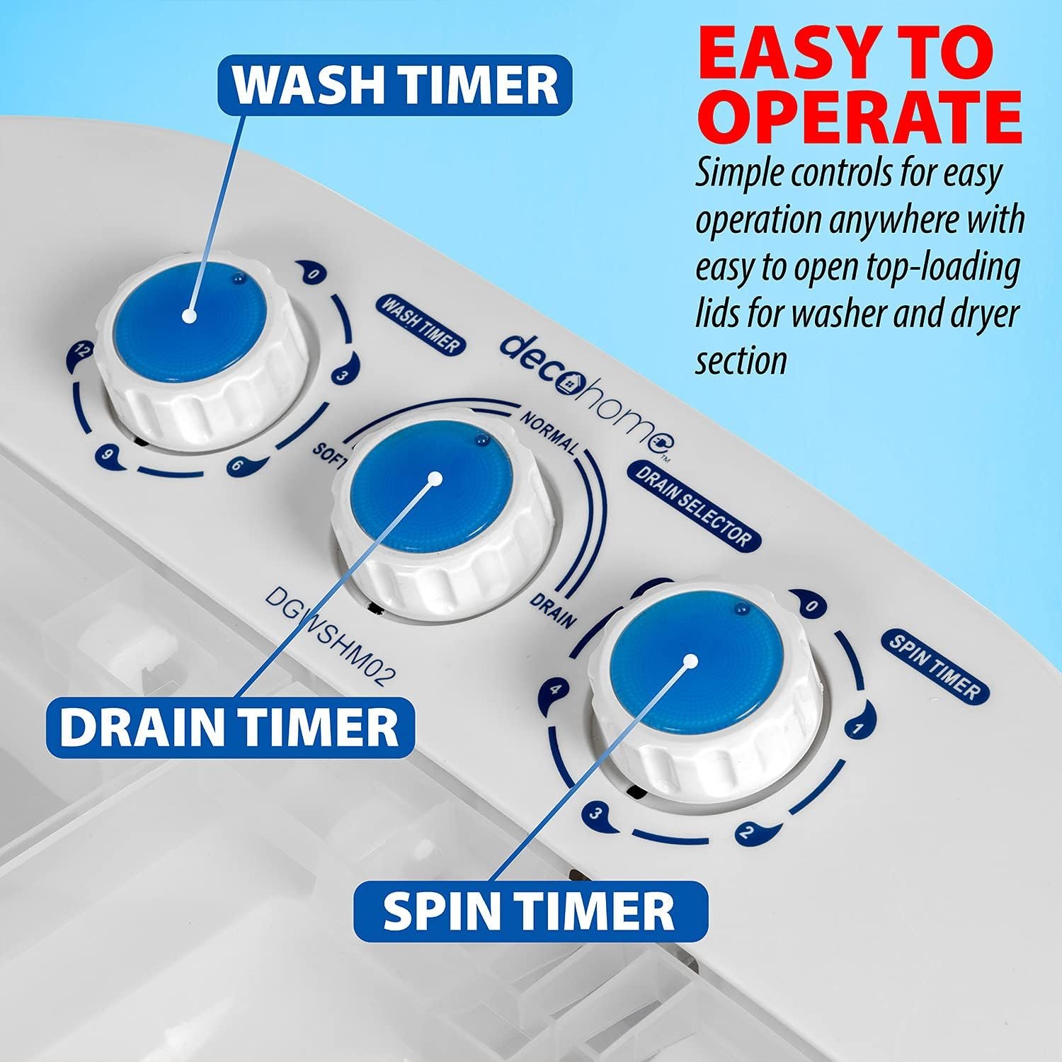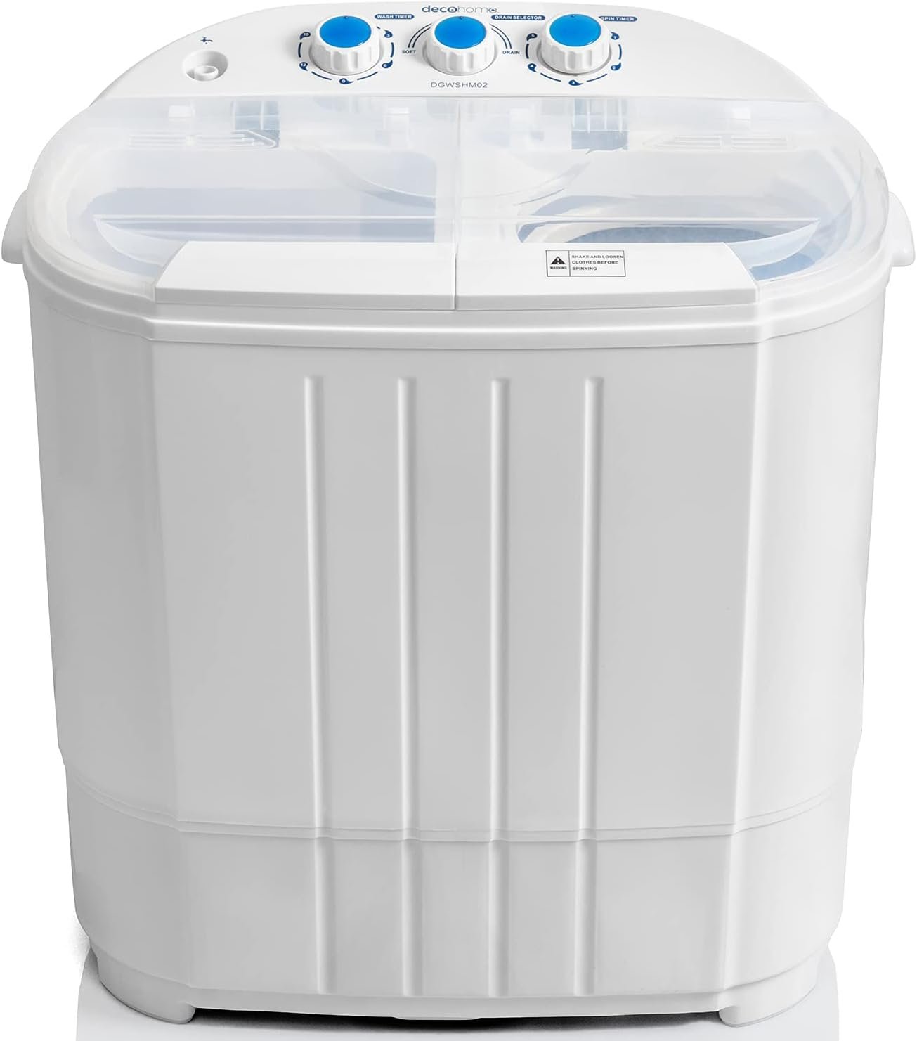 CONVENIENT AND EFFECTIVE – The Deco Home Twin Tub Compact Washing Machine is just the right size for people with tight spaces and portable living arrangements. If you’re trying to save space in your dorm room or on the go in your RV, this portable washer can save your time and money.