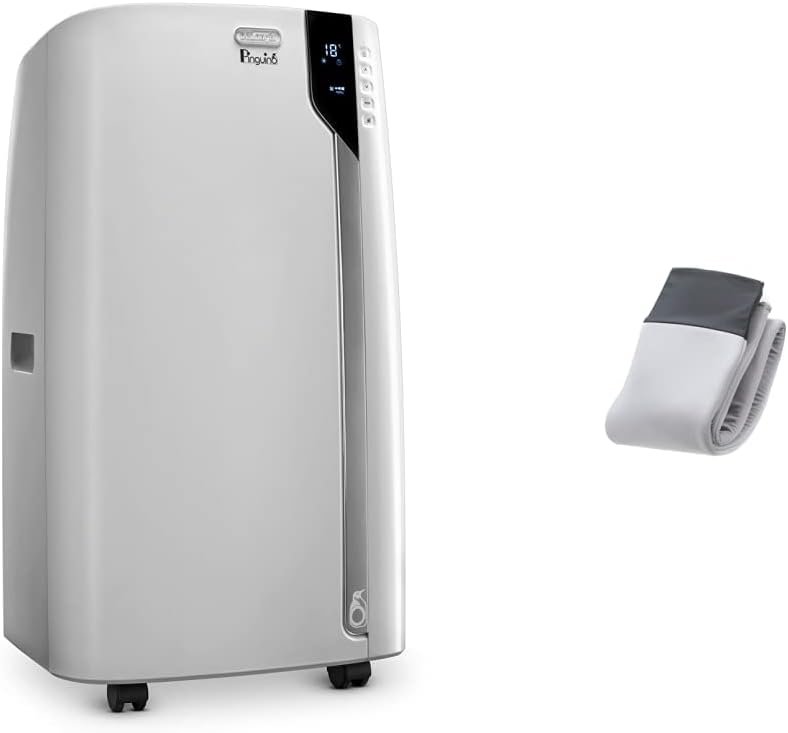 The De’Longhi Portable Air Conditioner Bundle includes a powerful 14,000 BTU portable air conditioner along with an insulated hose cover accessory. The Pinguino portable air conditioner uses innovative Cool Surround technology to deliver targeted cool air directly to you using the included remote control’s built-in temperature sensor. Operating at a quiet 62 dB, it effectively cools extra large 700 sq ft rooms as an air conditioner, dehumidifier and fan. The included hose cover accessory is easy to install and designed to dramatically decrease hose temperature and increase the cooling efficiency of the portable unit. By keeping the heat out, it allows the 14,000 BTU air conditioner to maintain maximum cooling capacity. Together, the portable air conditioner and insulated hose cover provide effective whole-room cooling with maximized efficiency.