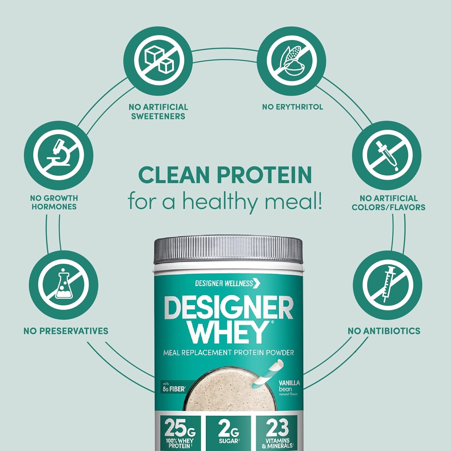 Contains 1 – 1.72 Pound Canister of Designer Whey Protein Meal Powder by Designer Protein, Vanilla Bean Flavor. Packaging May Vary