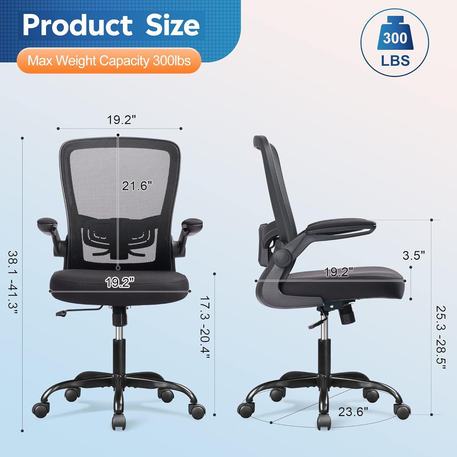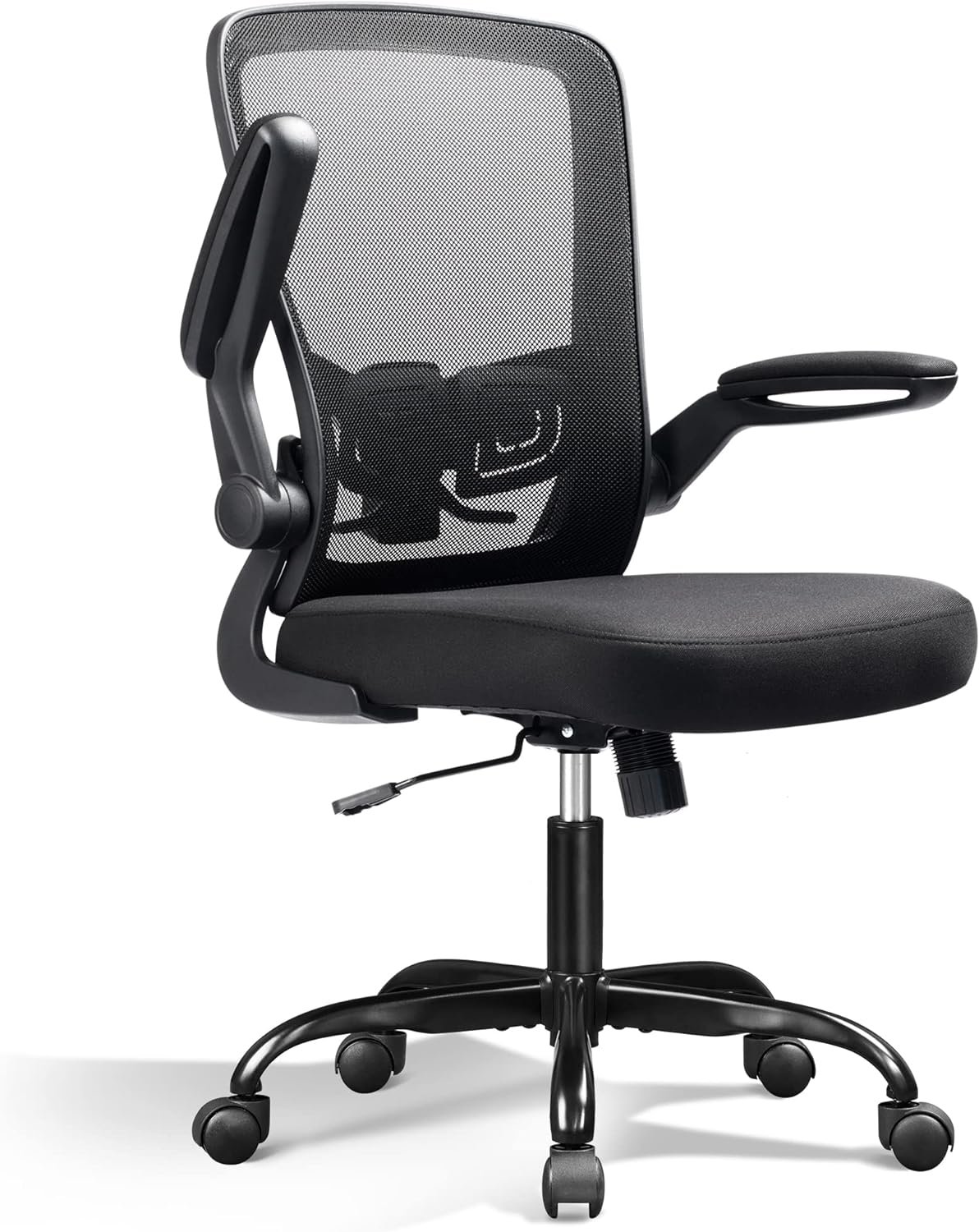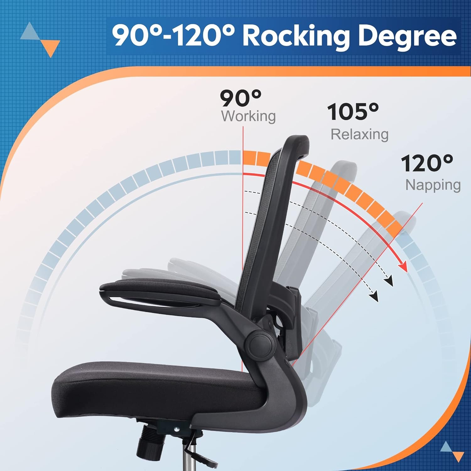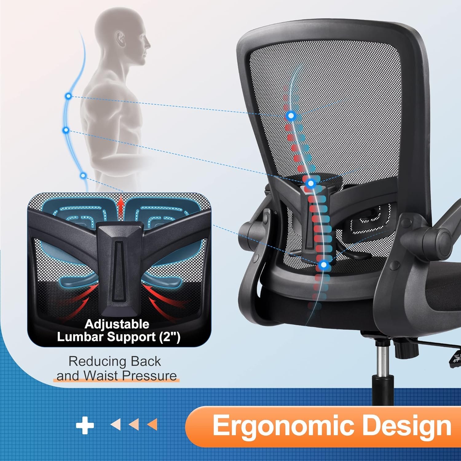 HOME OFFICE DESK CHAIR: This computer desk chair features Ergonomic Human Curve designed backrest, eases pain on back for everyday use. Space saving flip-up arms for different situations.
