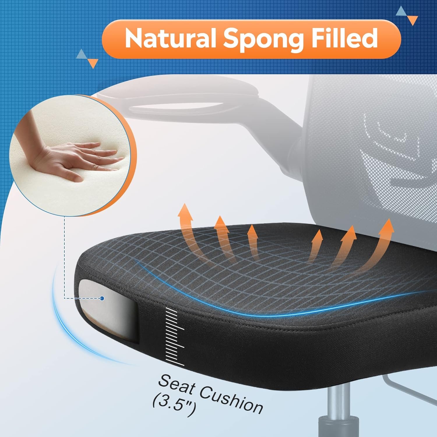 BREATHABLE MESH DESK CHAIR: This home office chair with breathable mesh material keeps your back and legs cool and comfortable. Offer a big adjustable seat with comfortable foam padding.