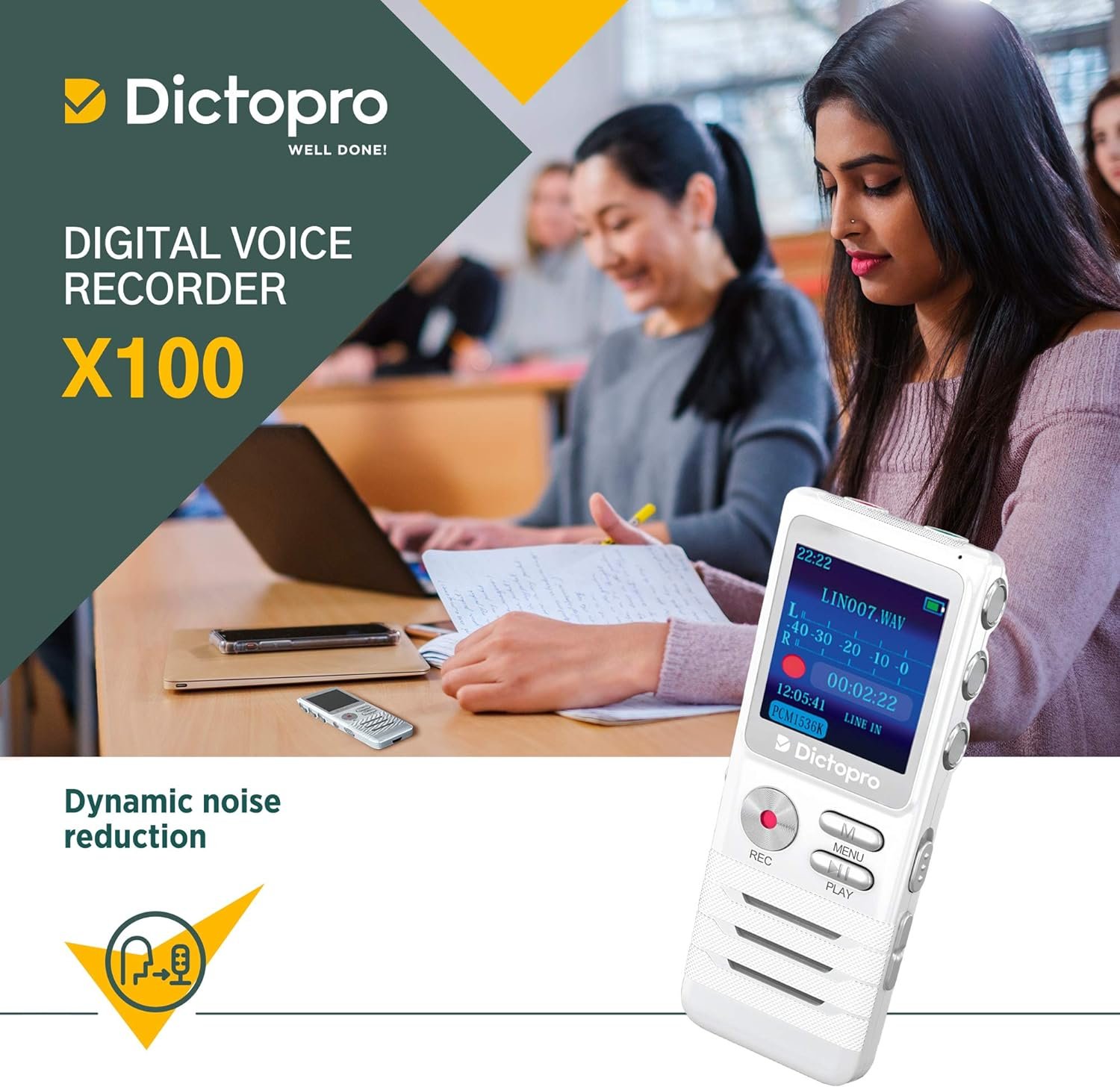 DICTOPRO X100 – HD DIGITAL VOICE RECORDER WITH DOUBLE MICROPHONE