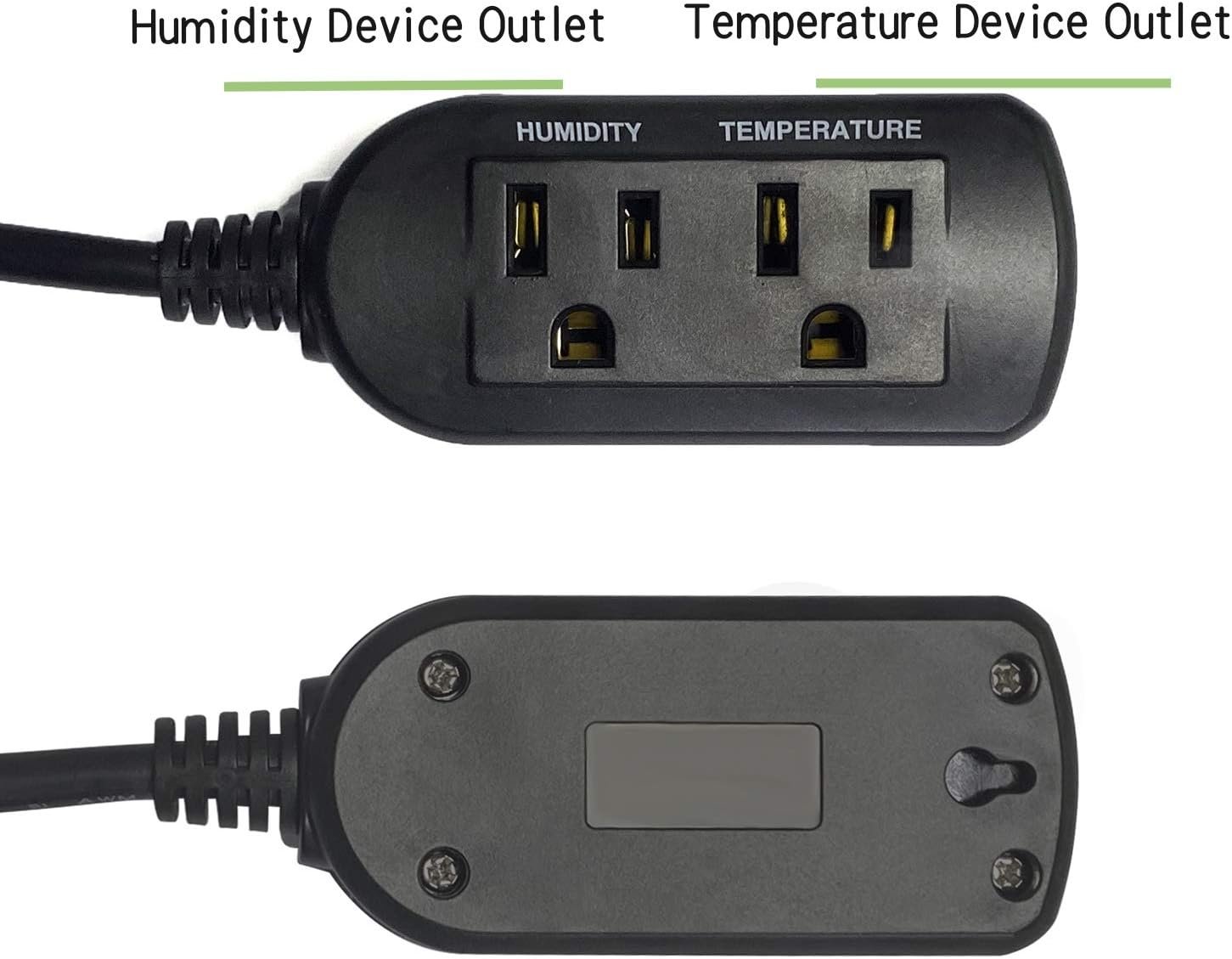🌱【Convenient Design】The temperature and humidity controller has a large LCD screen with simple 3-button, and pre-wired design making it easier for use with plug and play.