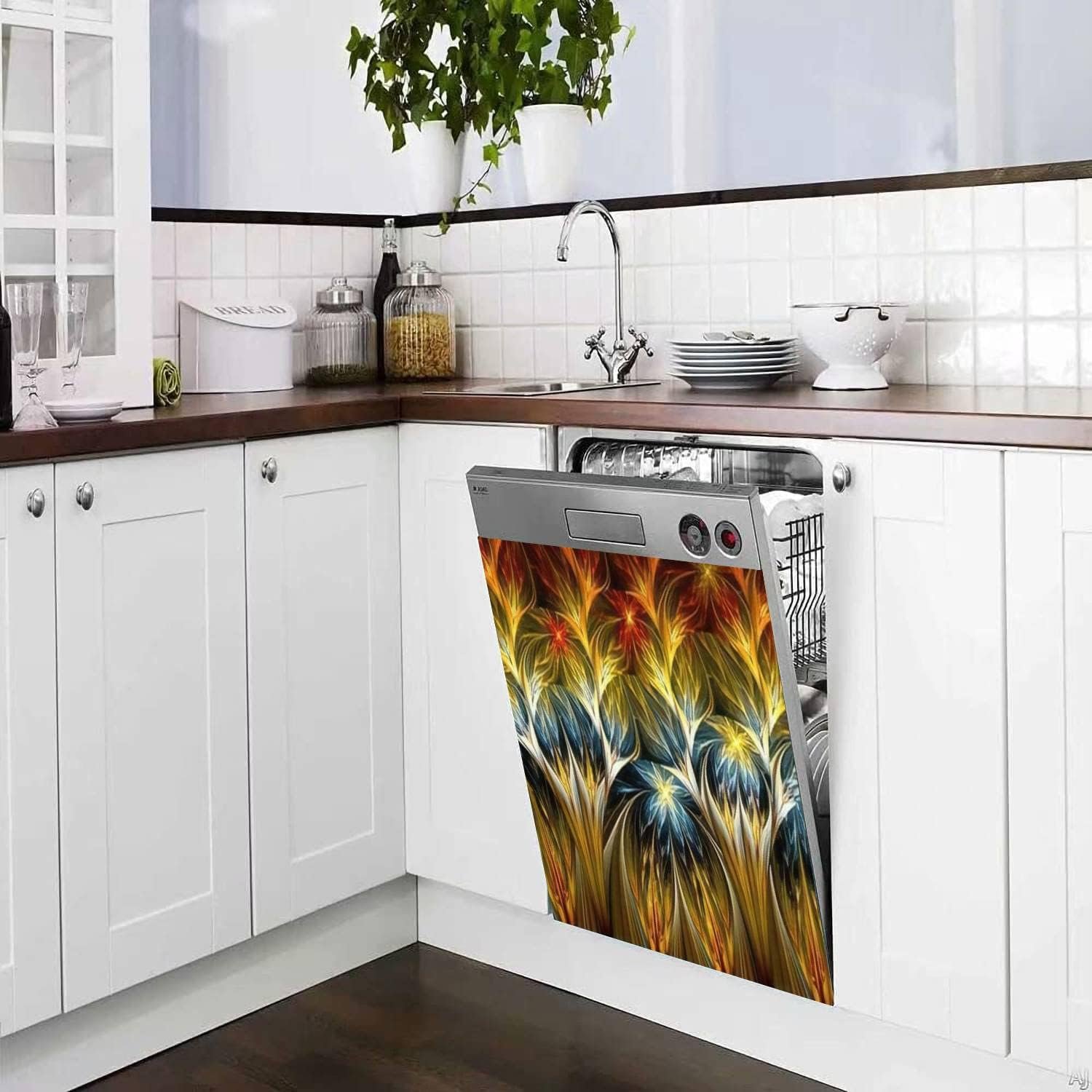 GORGEOUS DESIGN: Dishwasher cover/fridge sticker to light up and show to everybody how gorgeous your favorite corner is. It can be used for hiding the scratches, dents, and other unappealing marks on your dishwasher. We have multiple styles for you to choose from, just add to cart and instantly brighten up your kitchen decor.