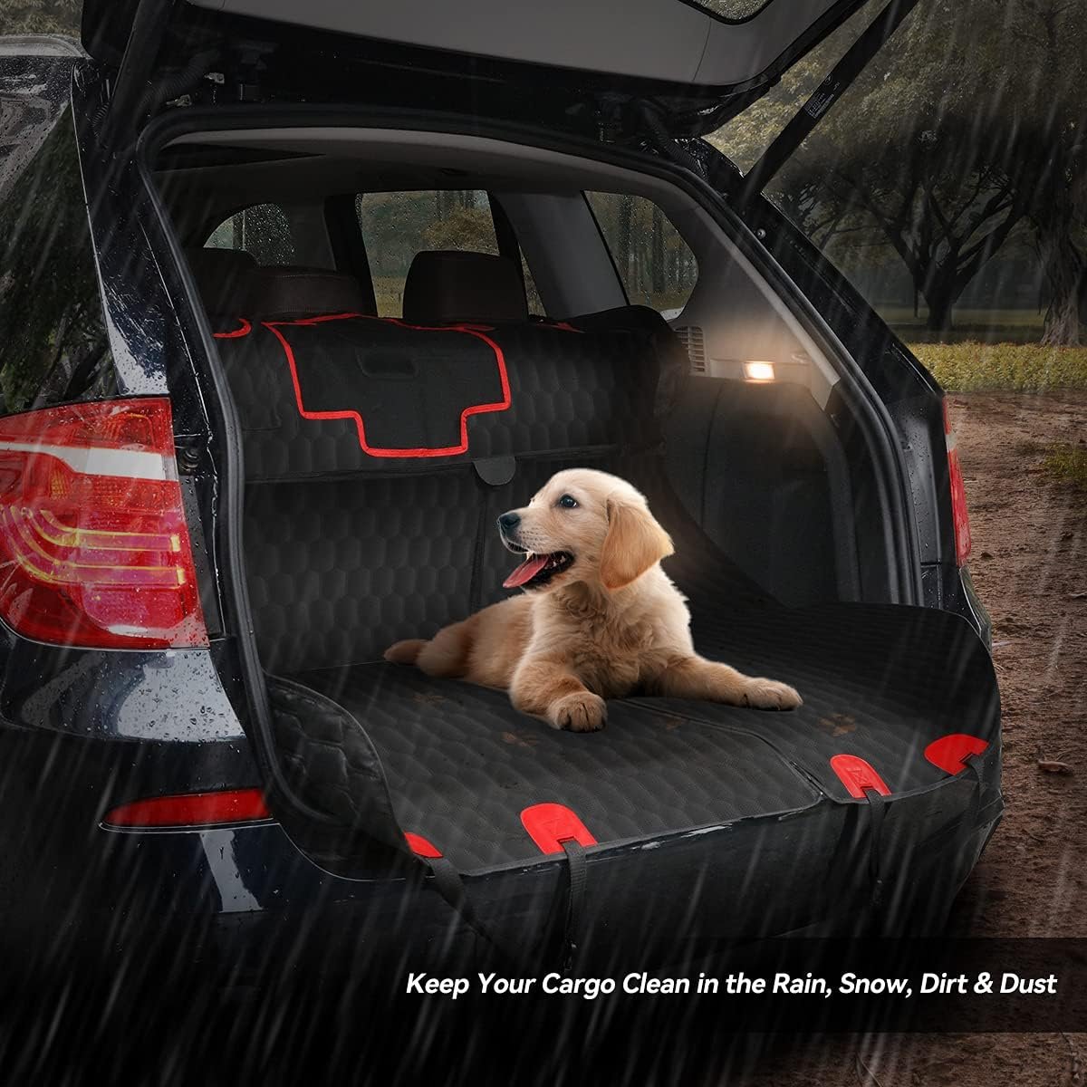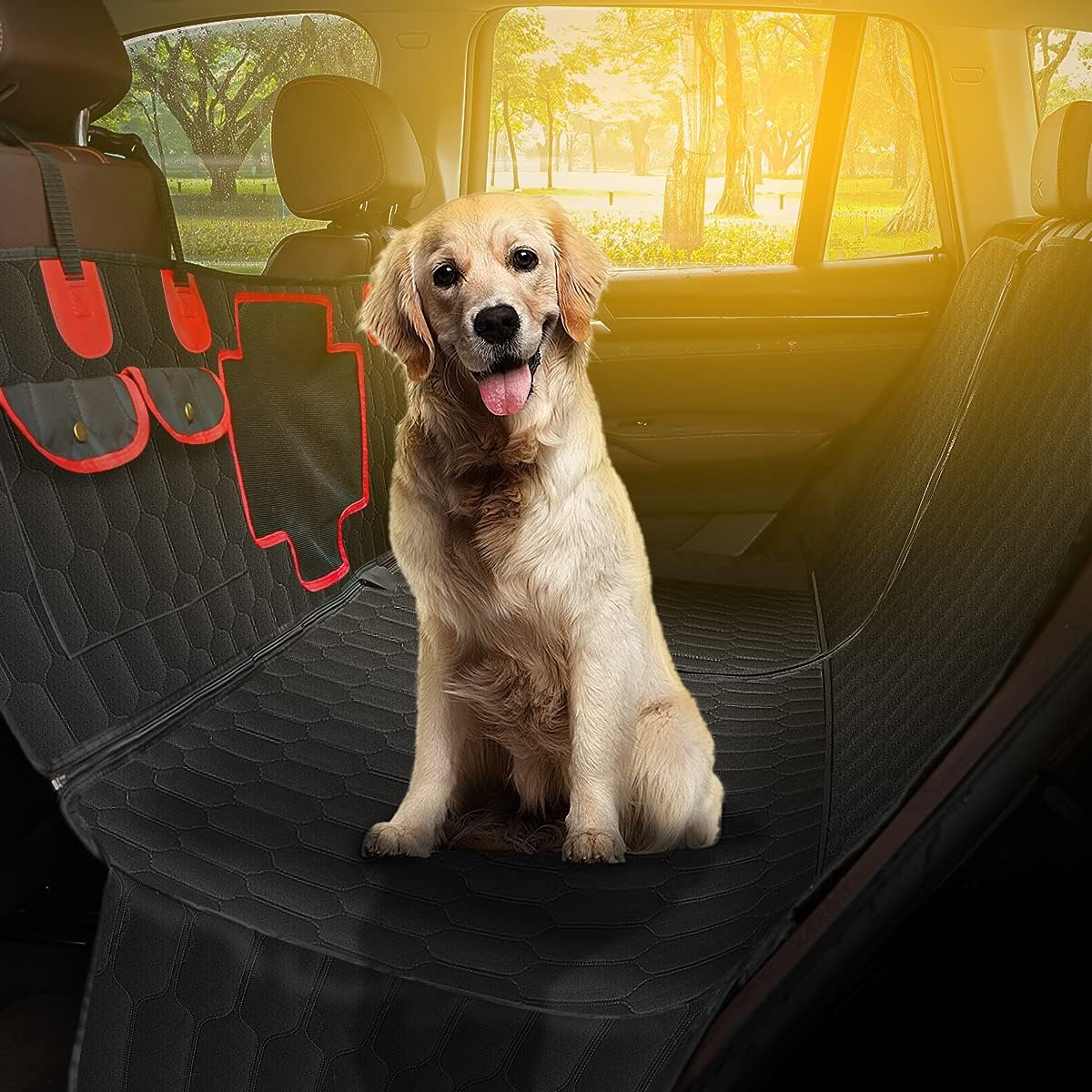 SIDE FLAP DESIGN – The side flap provides a full and effective protection for the backseat and car door, particular in preventing the dog scratches on the leather bench. It also can help older dogs jumping in and getting off your vehicle.