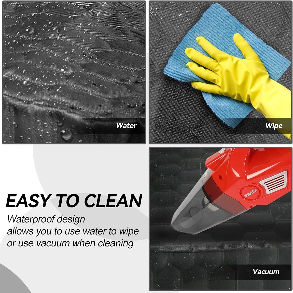 EASY INSTALLATION & CLEAN – 58″ Front to Back X 52″ Wide universal size for most vehicles. Easy to be installed no matter cars, trucks and SUVs in a minute. The easy clean material big decrease your annoy and worry about the endless sweep. Just damp cloth or vacuum, it will be like new shortly.