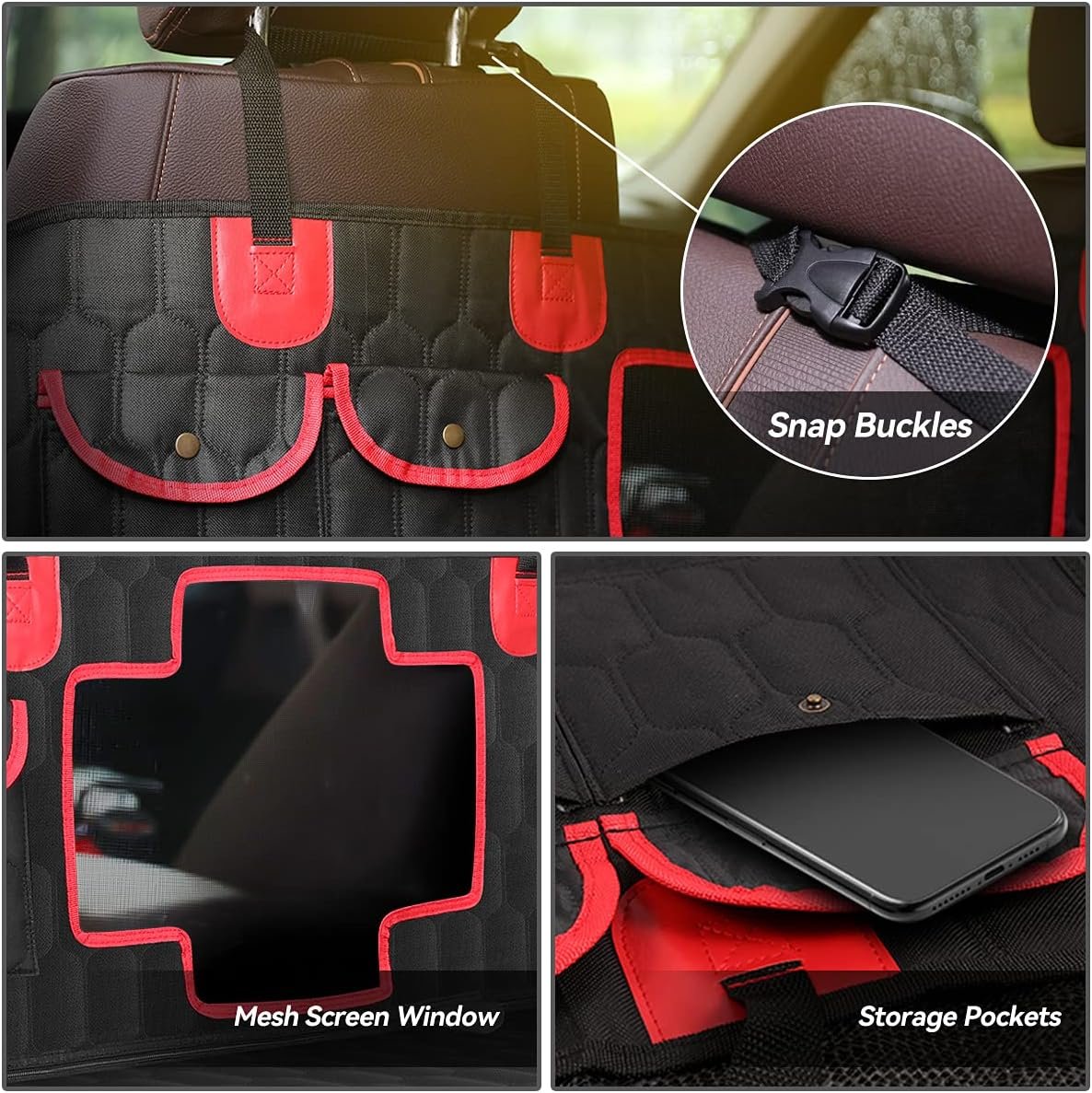 SAFTY for PETS – The seat cover featured with non-slip and seat belts to ensure your pet will not slide around, especially in the emergency brake. The hommock style also secure your dog on the backseat. The driver does not need to be distracted from driving on a trip.