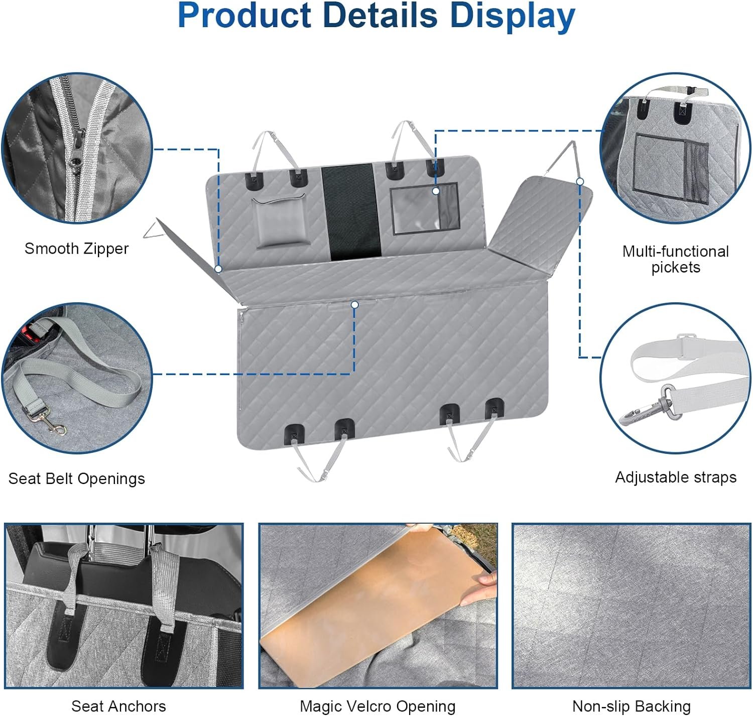 【Multi-Functional Dog Hammock for Car Design】 The back seat protector for dog’s bottom sides are equipped with zippers, allowing both your pet and family to ride together and enjoy the journey. Additionally, the 600D cationic fabric surface is waterproof and abrasion-resistant, effectively safeguarding your seats from scratches and liquid spills.