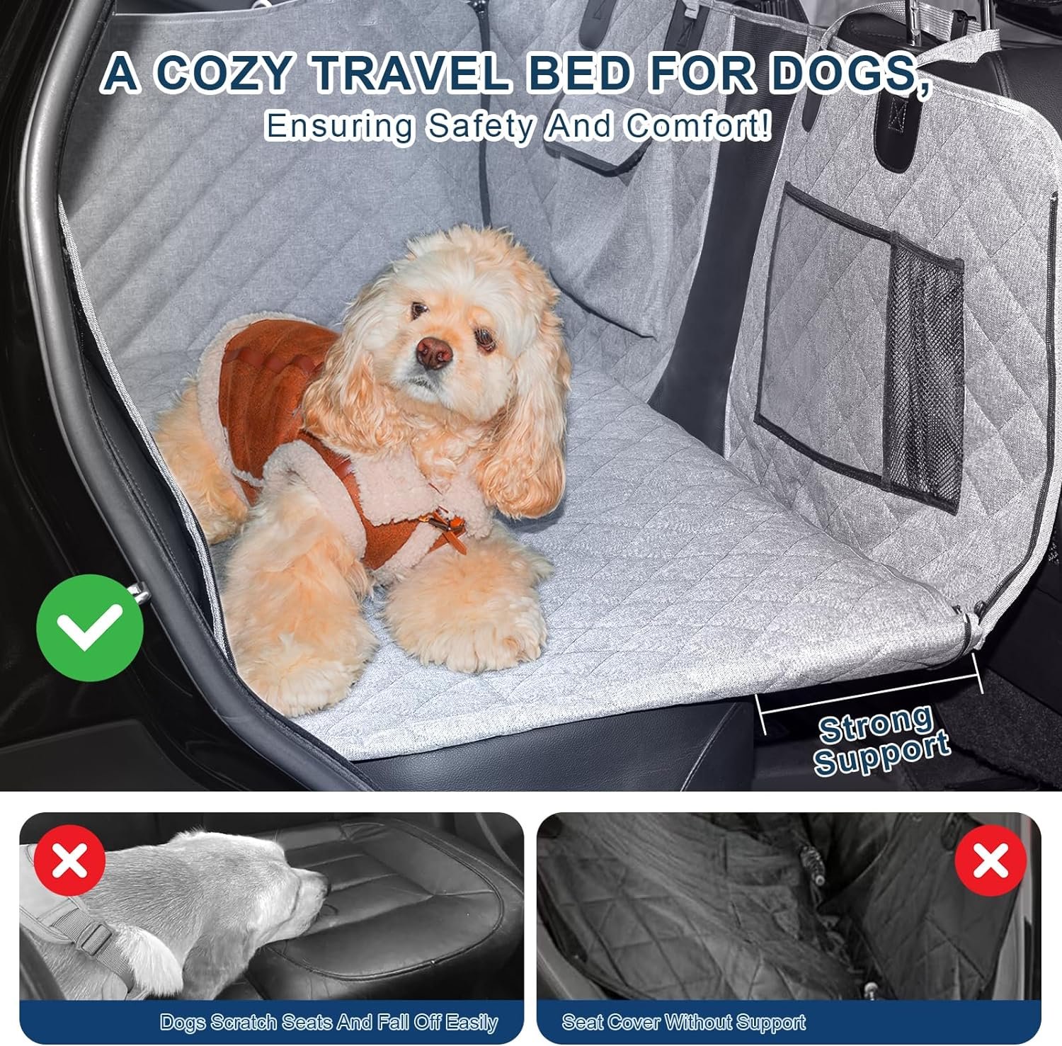 【Sturdy Dog Seat Cover for Back Seat Support】The interior of the Dog Seat Cover features robust wooden board support and the bottom is designed with anti-slip fabric, ensuring exceptional stability for your pet. It remains solid whether there’s an emergency brake or your pet gets restless.