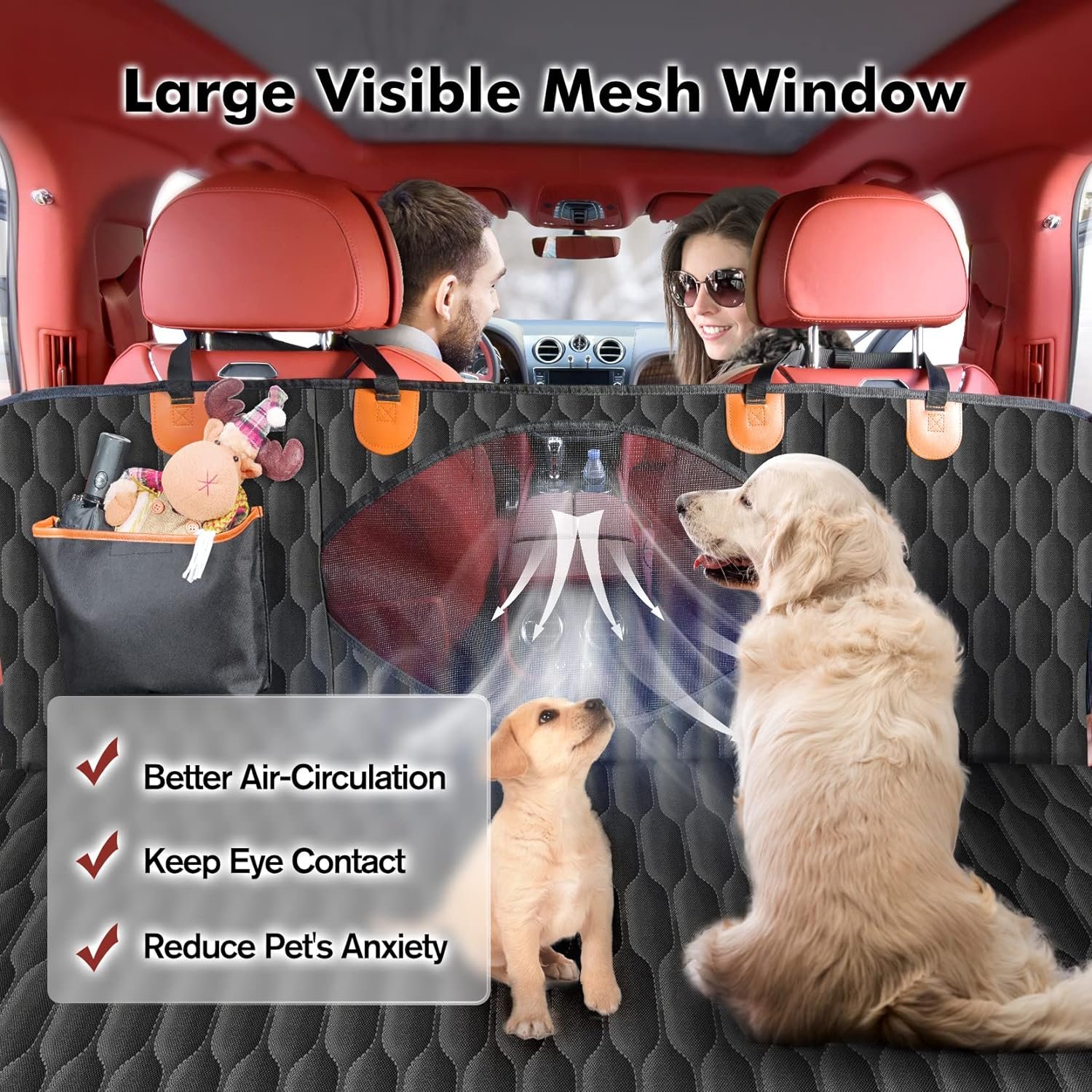 𝐕𝐈𝐒𝐈𝐁𝐋𝐄 𝐖𝐈𝐍𝐃𝐎𝐖 𝐅𝐎𝐑 𝐄𝐍𝐃𝐋𝐄𝐒𝐒 𝐂𝐎𝐌𝐅𝐎𝐑𝐓: The large mesh window not only provides better air circulation but also allows you to keep an eye on your furry friend during car rides, which help reduce your pet’s anxiety and can check on them whenever needed. The extra storage pockets are perfect for storing your pet’s food and toys.