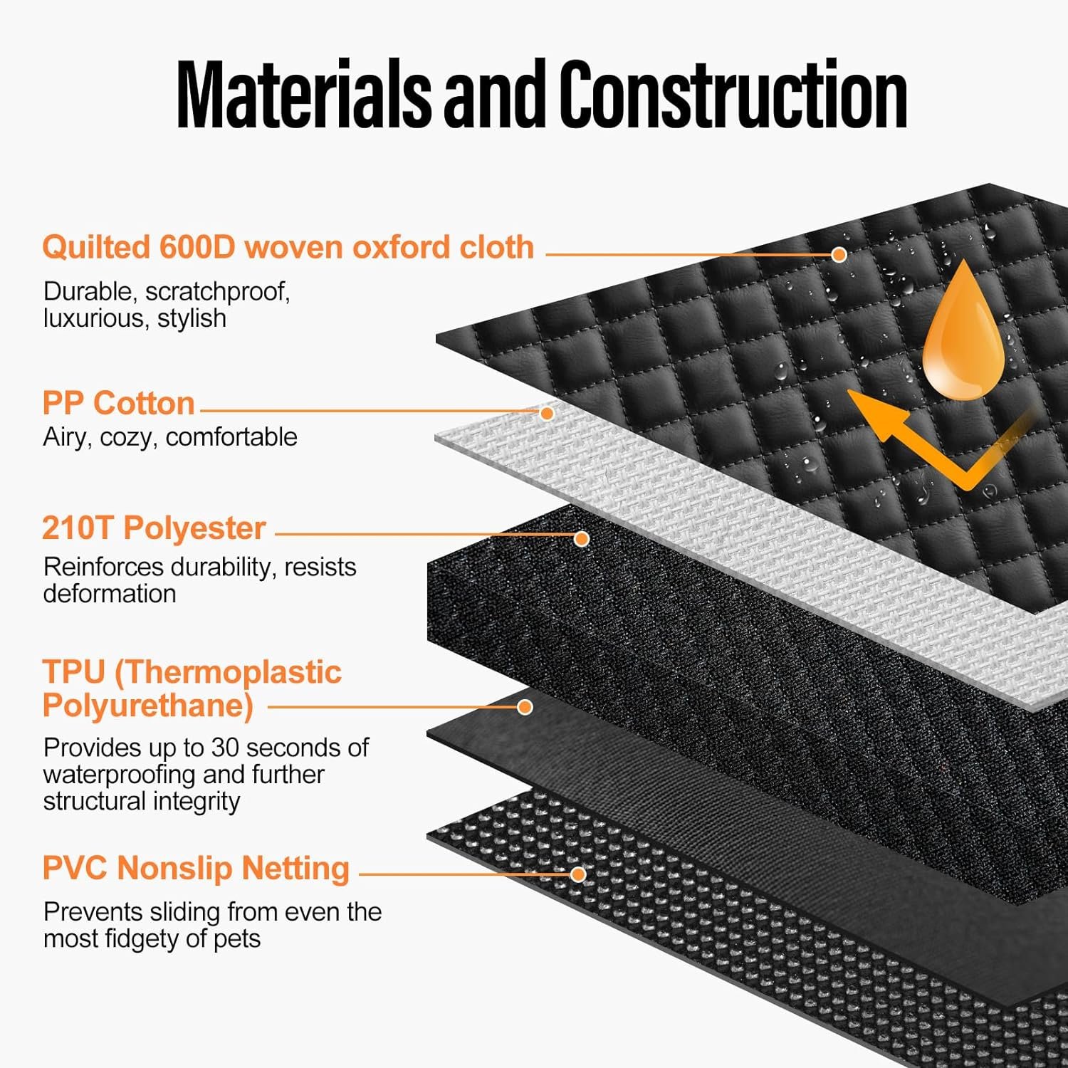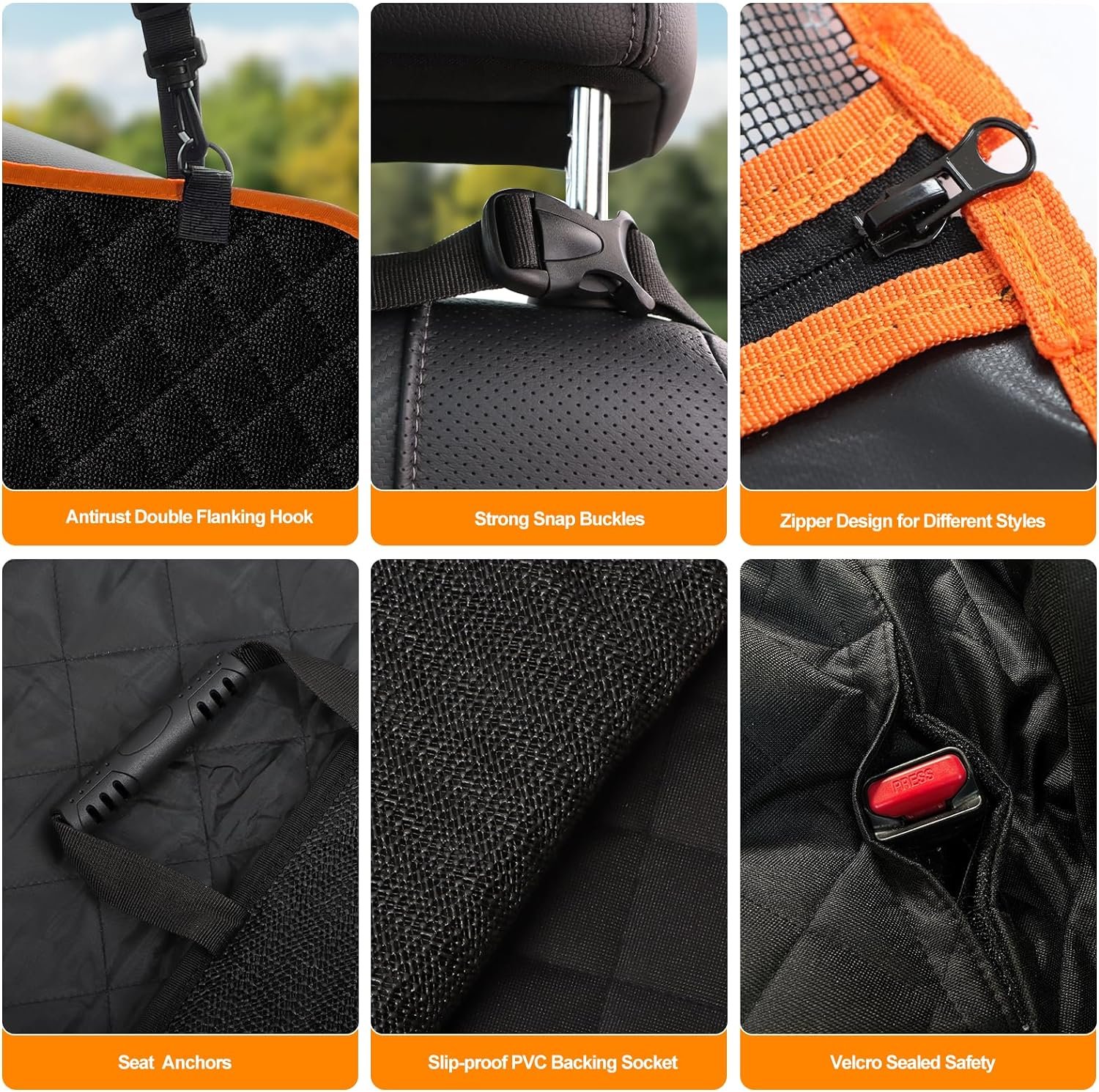 [ HIGH QUALITY MATERIALS ] This dog seat cover is crafted with a 5-layer material composition including 600D Oxford cloth, PP cotton, 210T polyester, TPU waterproof membrane, and anti-slip PVC netting. These cute car seat covers not only add a touch of elegance to your car’s interior, they are also designed to maximize the resilience of the product.