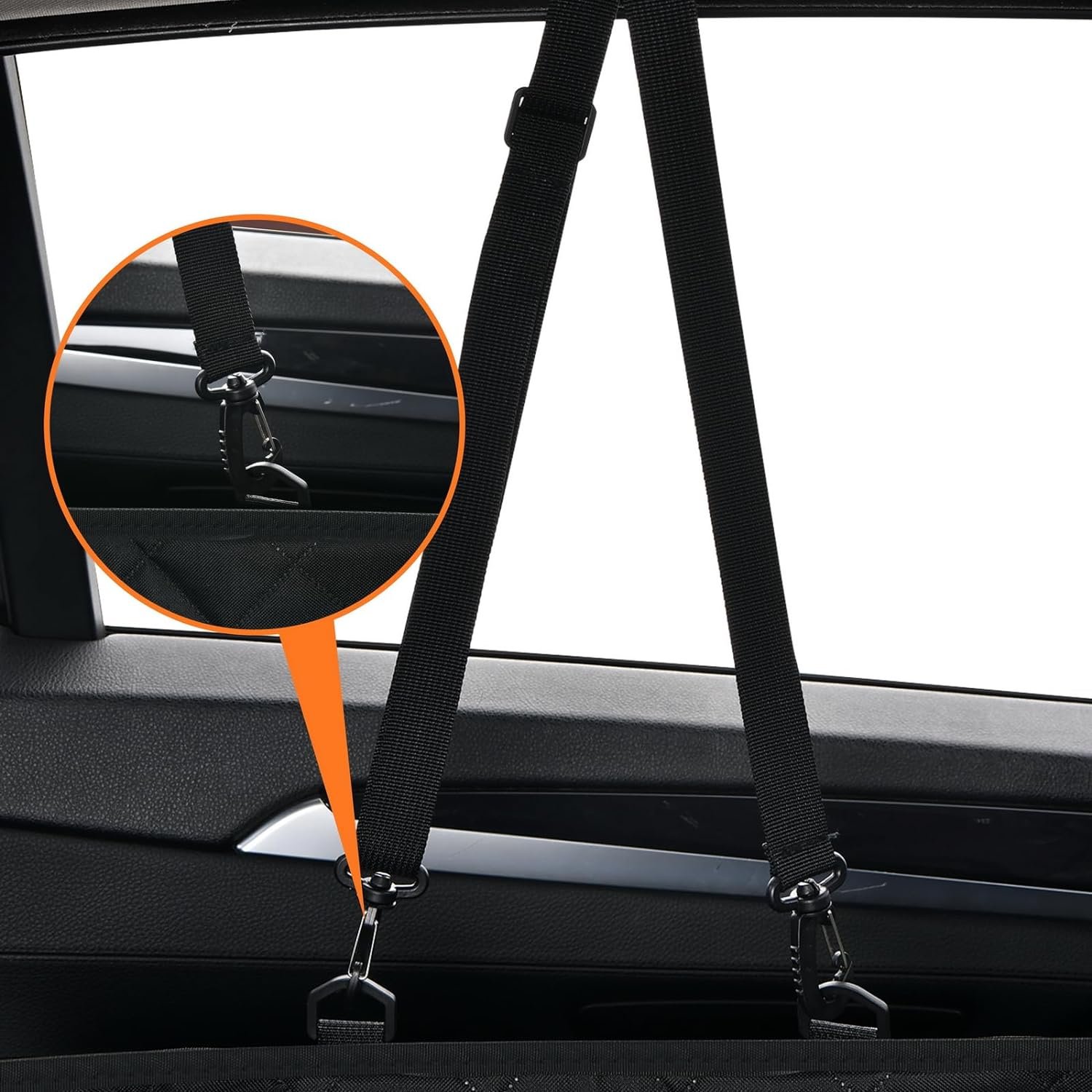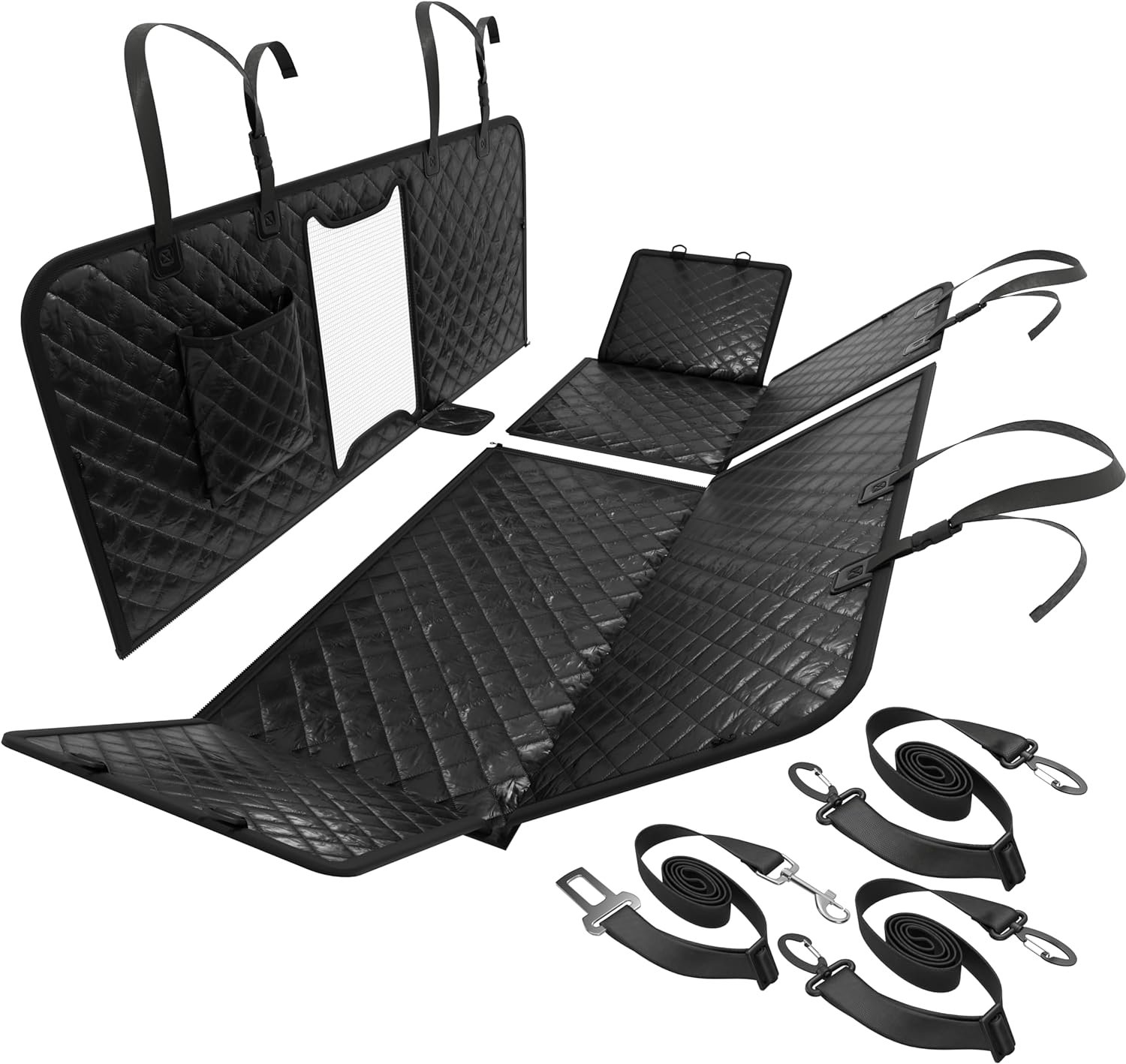 Breathable Mesh Window: Prioritizing your pet’s comfort, our back seat pet cover for dogs features a breathable and transparent mesh window in the center.. This innovative feature not only promotes better ventilation but also allows for continuous visual contact between you and your pet.