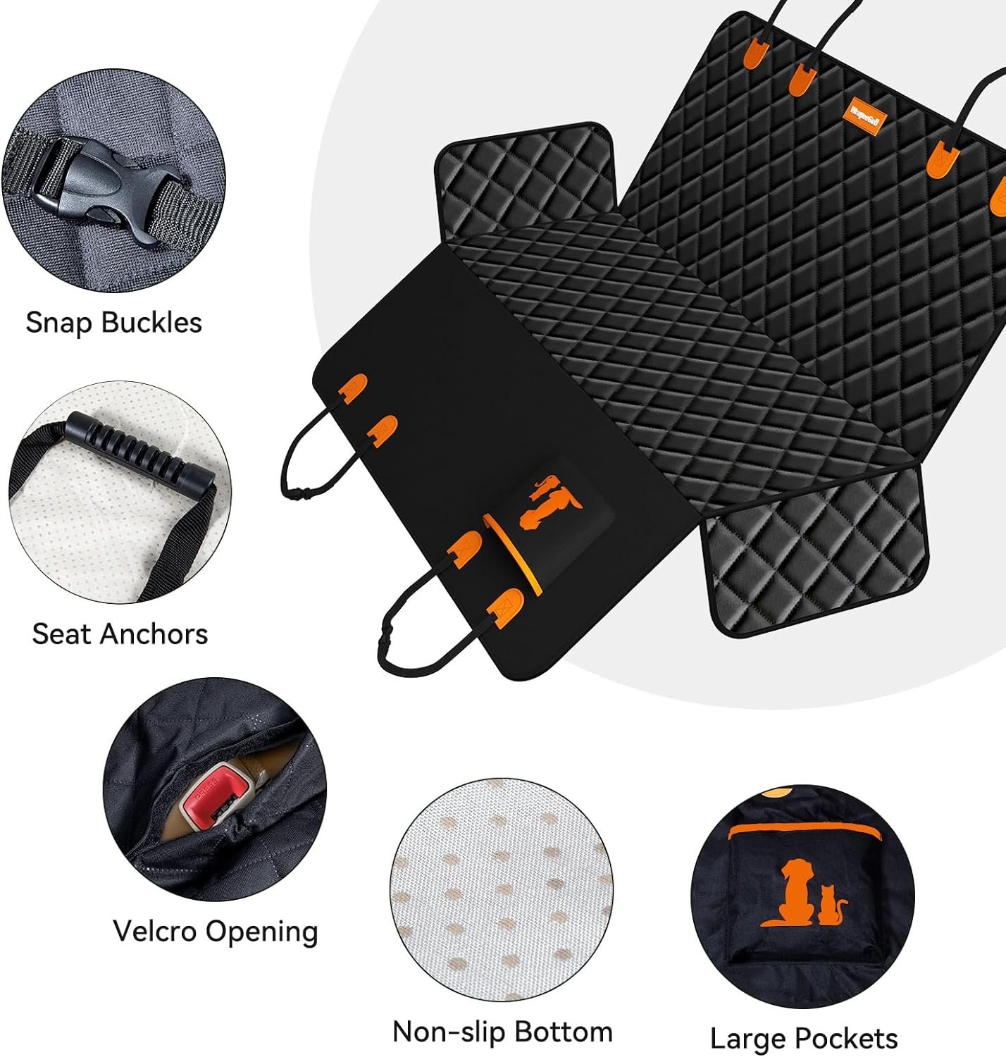 【Nonslip and Keep Safe】Our Car Seat Cover includs 4 adjustable headrest anchors and 2 seat anchors, Non-slip design ensures your furry friend stays put during car rides, providing a safe and comfortable journey for both you and your pet!