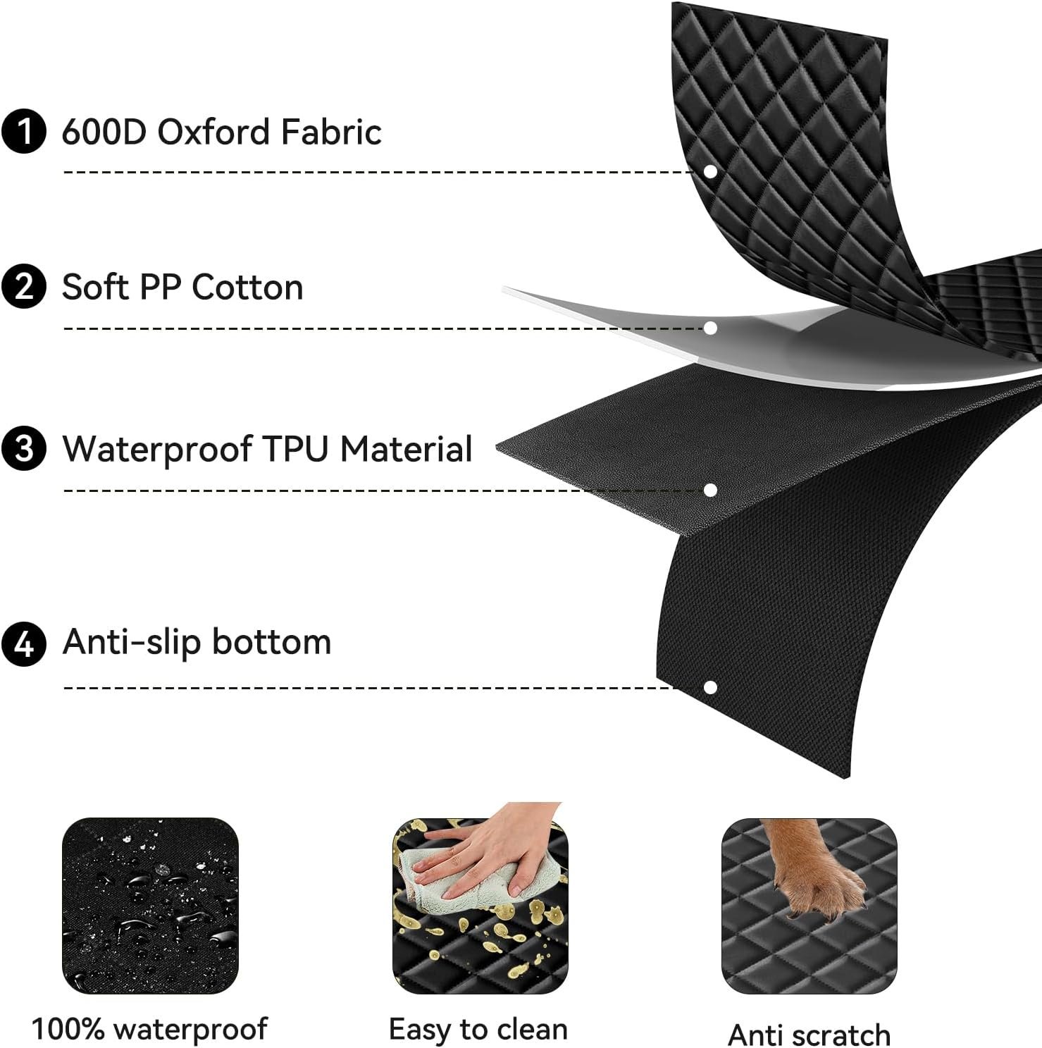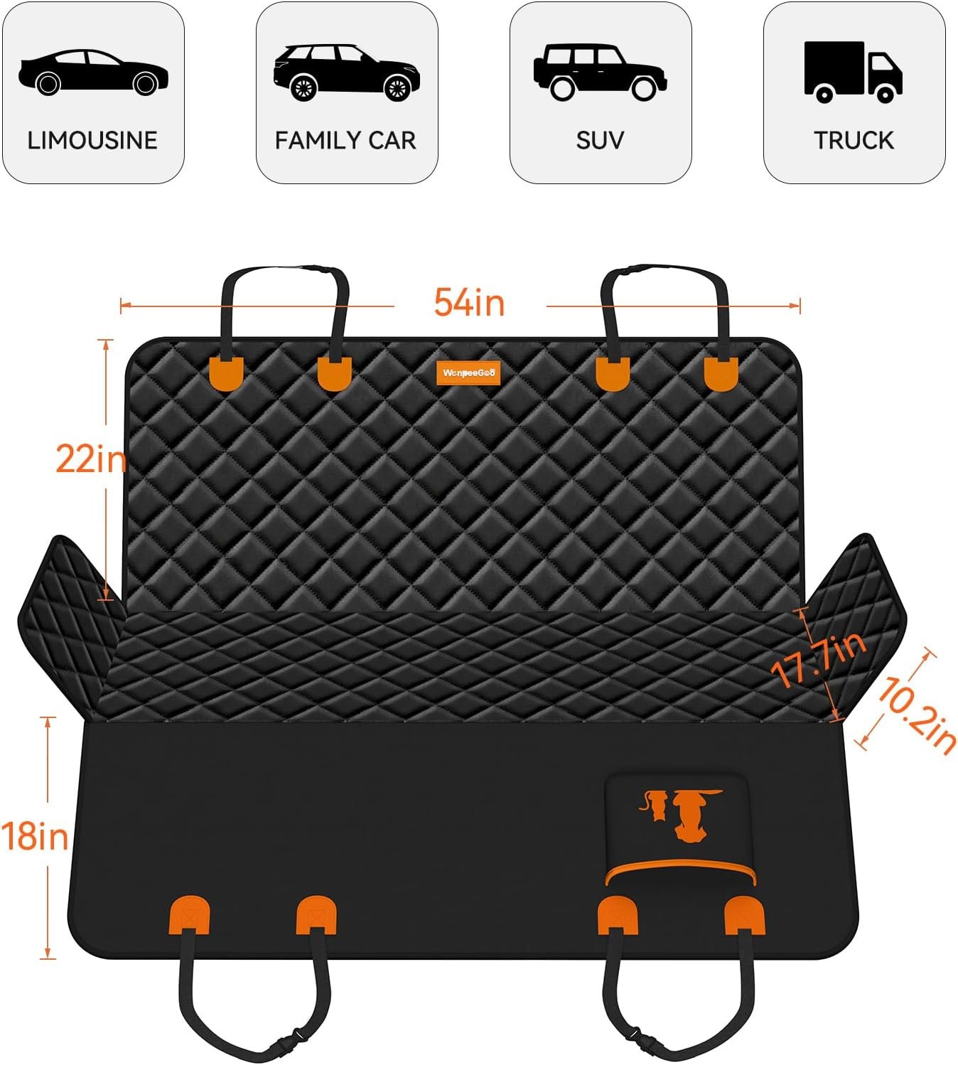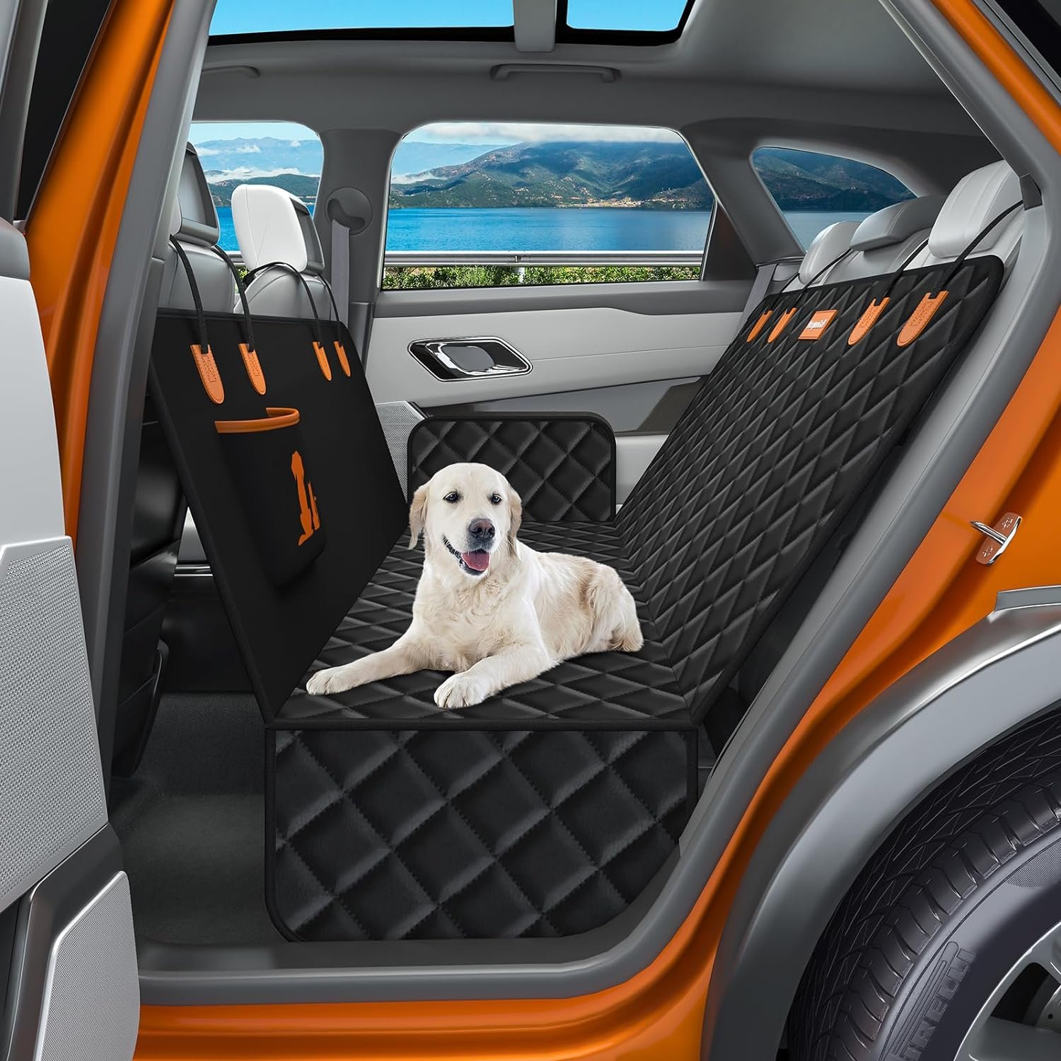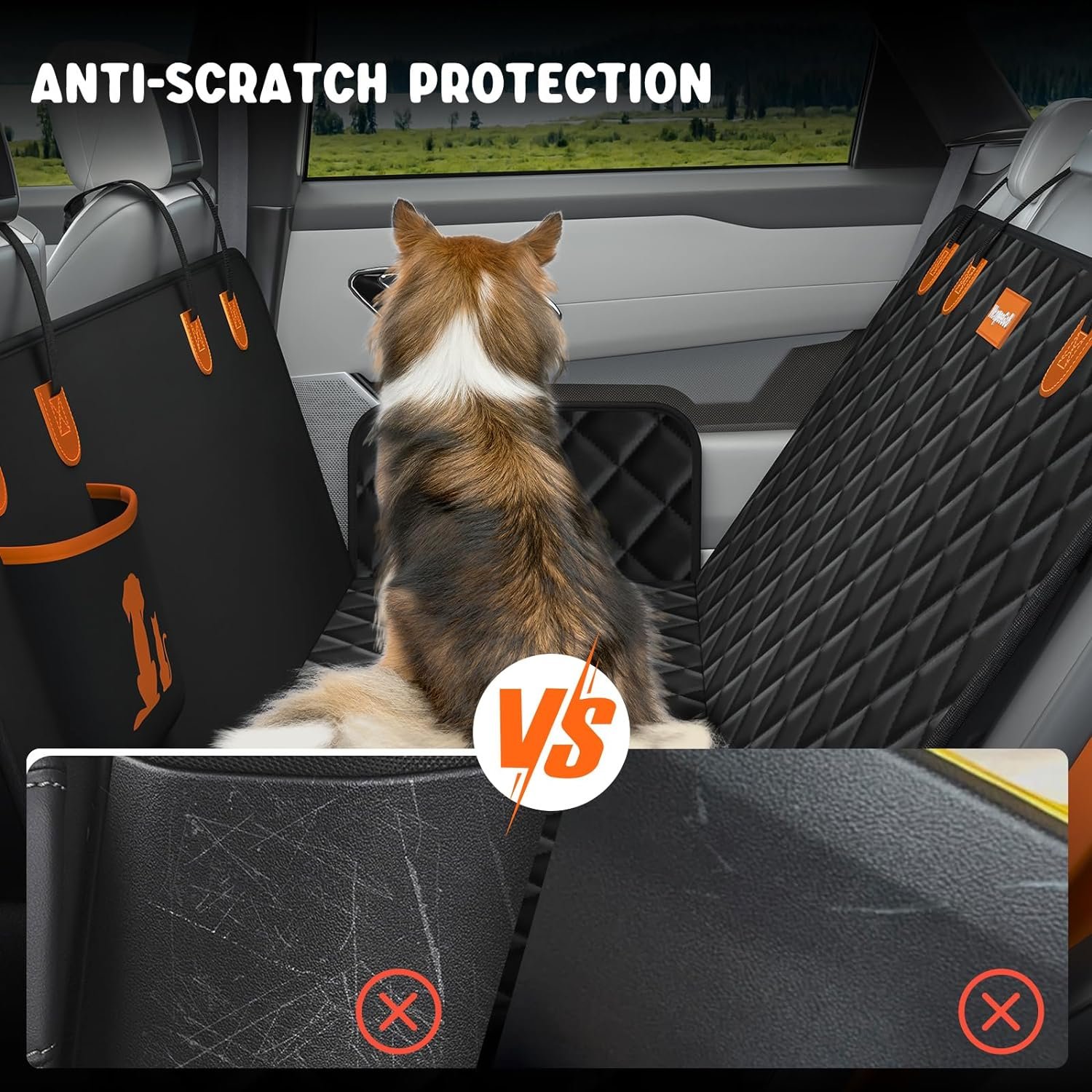 【Easy to Install & Clean】Our back seat cover for dogs is easy to install and remove, making it a must-have car necessity for pet owners. 600D Oxford material for easy vacuuming and cleaning.